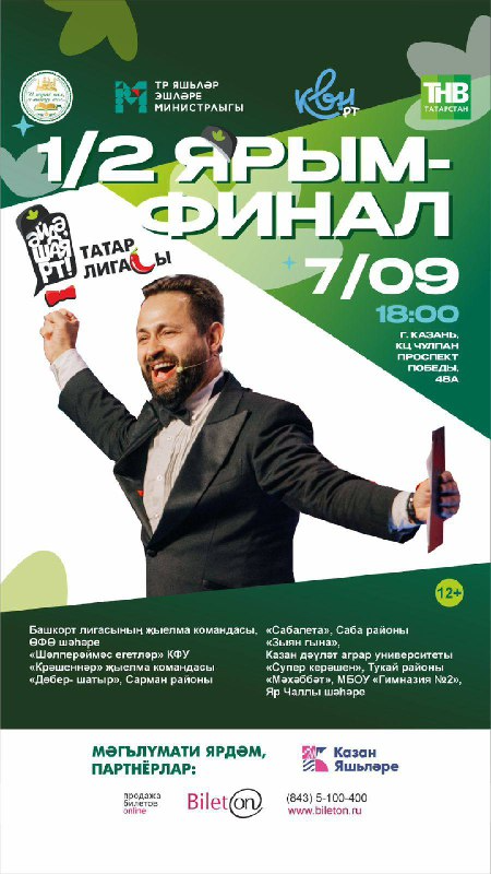 7 сентября в Казани состоится полуфинал Татарской лиги КВН. На сцене встретятся самые весёлые и талантливые команды, чтобы побороться за выход в финал.