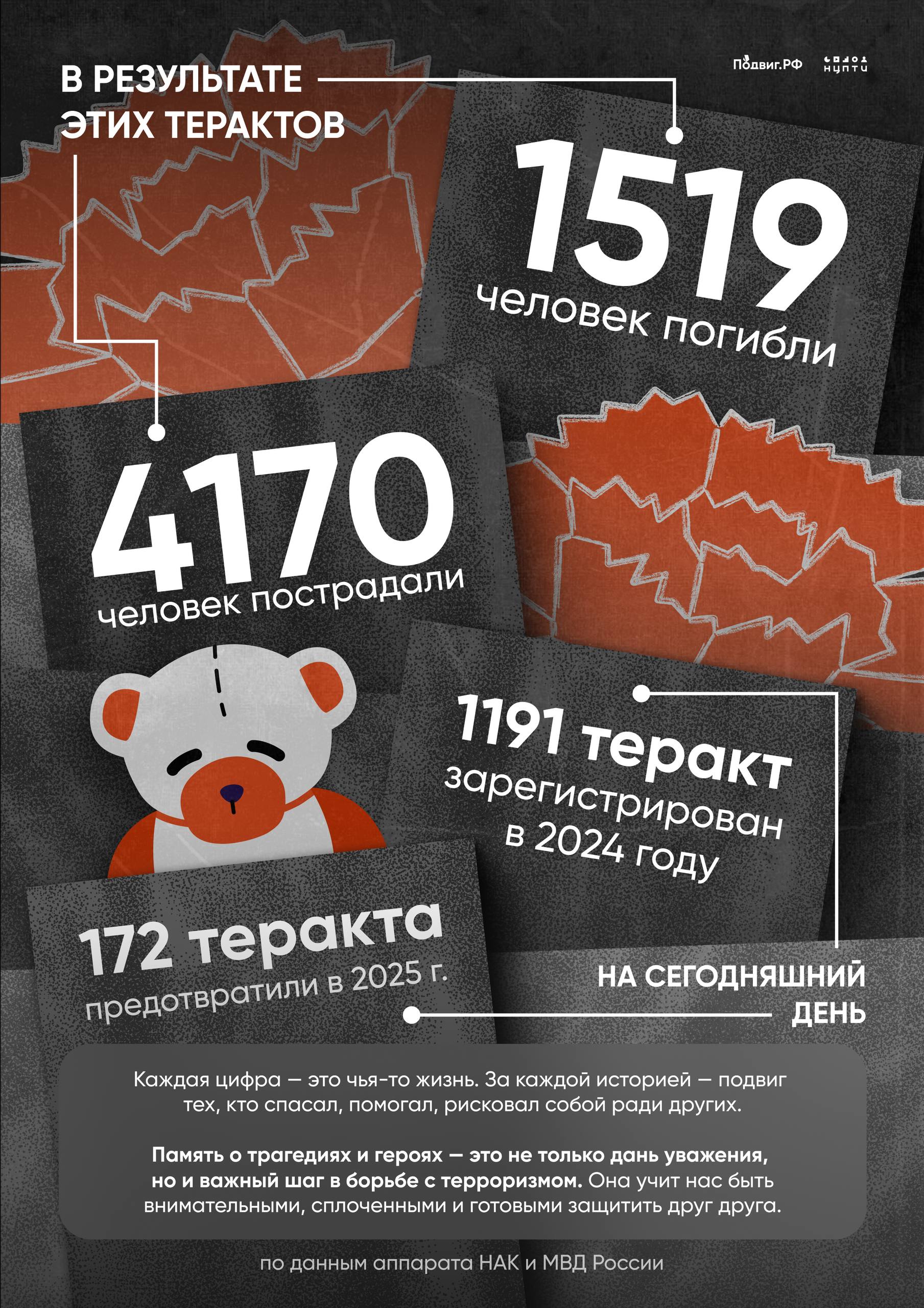 Эта дата связана с трагическими событиями в Беслане и напоминает нам о цене человеческой жизни, о необходимости единства и решимости противостоять террору.