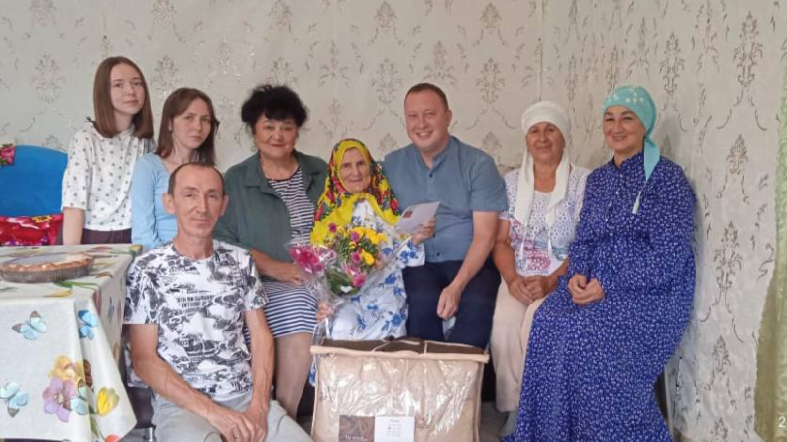 С поздравлениями, памятным подарком и добрыми словами к юбиляру приехали: – руководитель аппарата Совета Тукаевского района Айрат Габдуллин, – председатель Совета ветеранов района Файруза Вазеева.