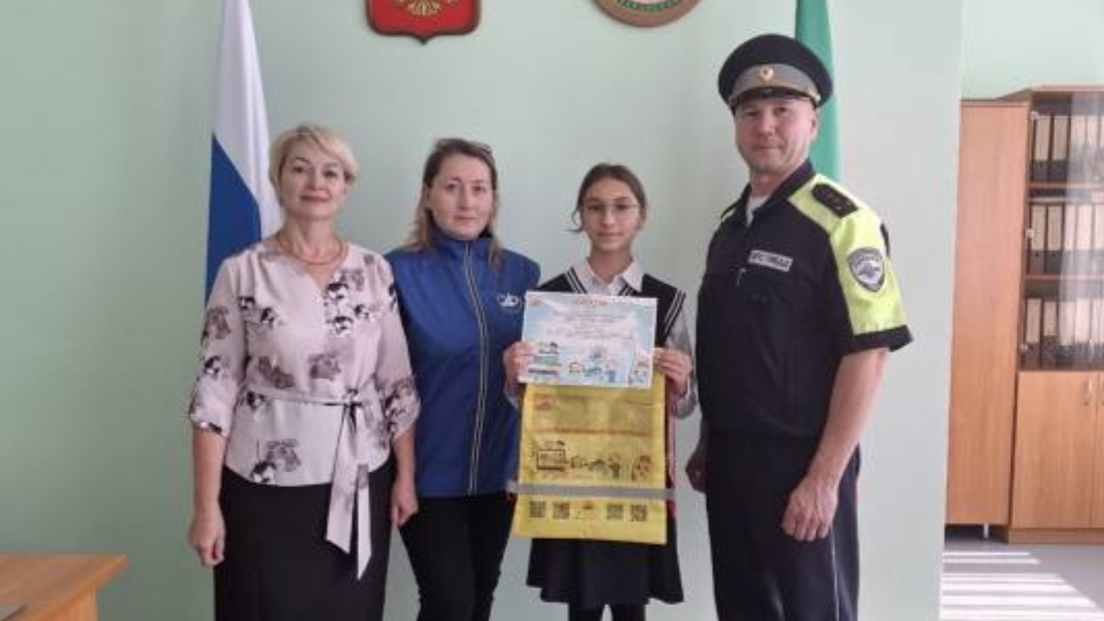 Начальник территориального управления ГБУ «Безопасность дорожного движения» в г. Набережные Челны Резеда Гилмутдинова и заместитель командира 2 роты ОСБ ДПС ГИБДД МВД по РТ, капитан полиции Рузаль Шарафиев вручили грамоту и памятный подарок ученице 8 класса Зиле Назиповой.