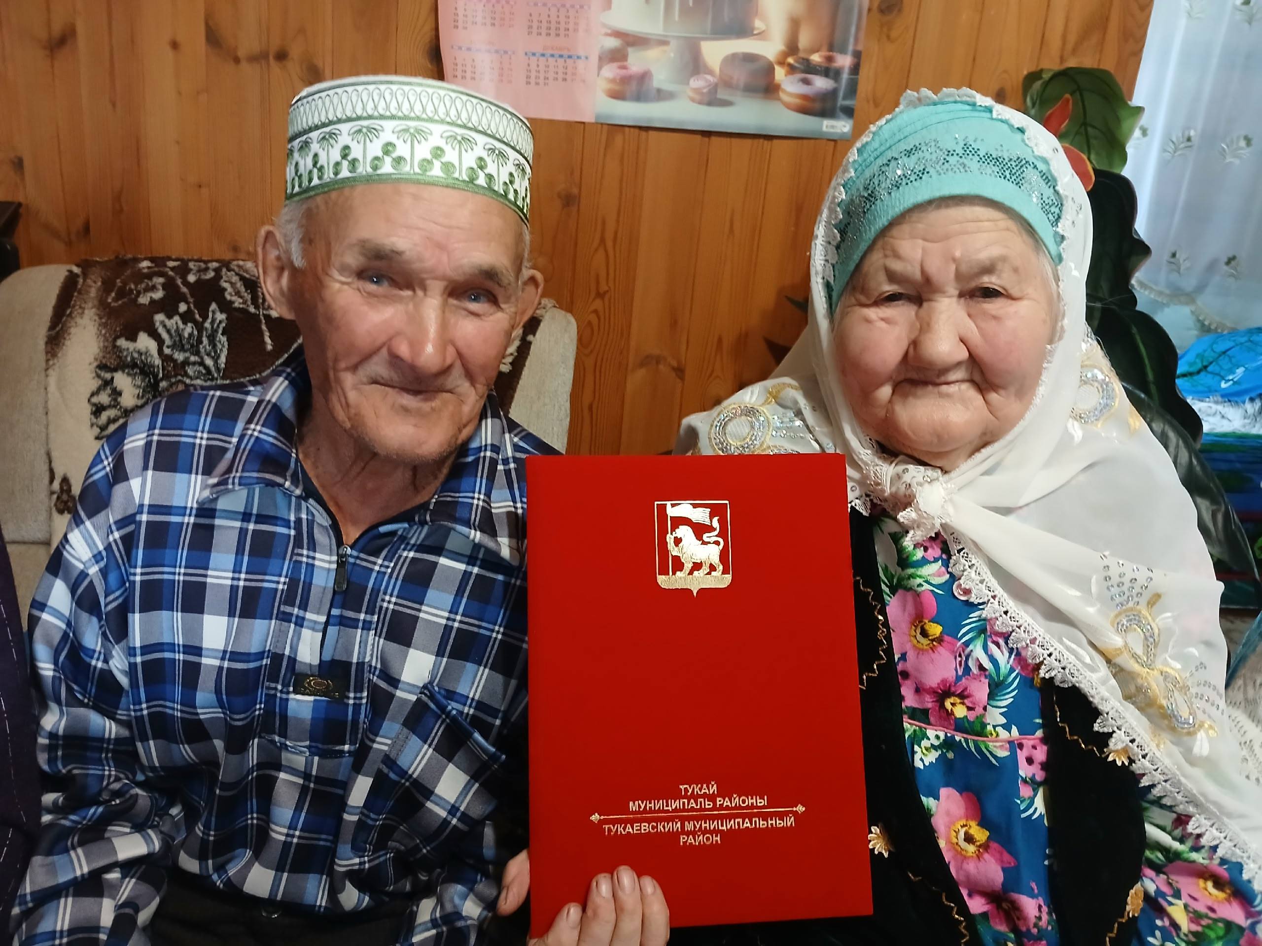 От имени главы Тукаевского района Камиля Назмиева юбилярам были переданы поздравительное письмо, тёплые слова и подарки от районного отдела ЗАГС, Совета ветеранов и общества инвалидов.