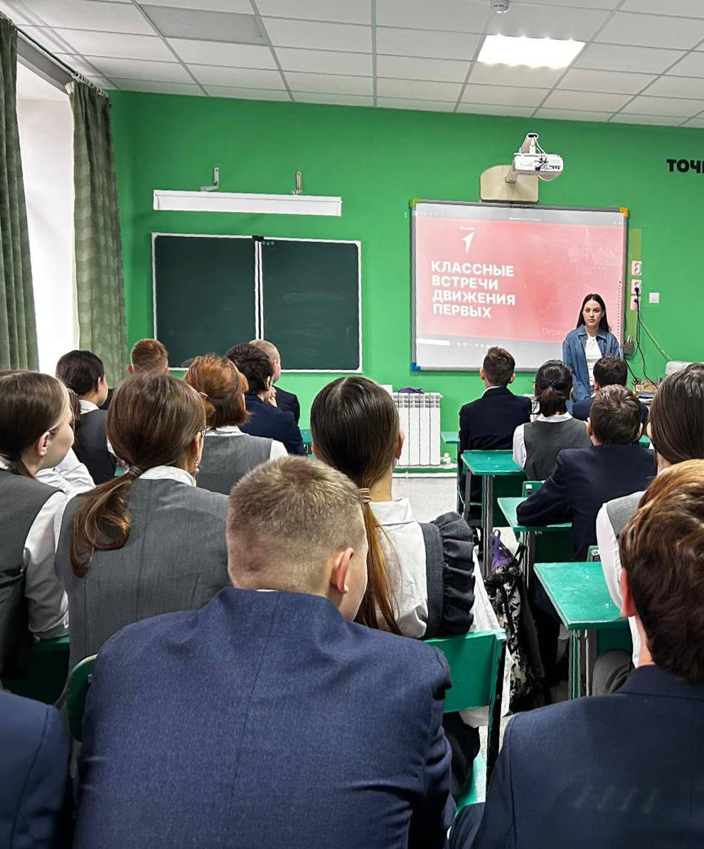 В рамках проекта «Классные встречи» Движения Первых в Калмашской школе прошла встреча с выпускницей школы — студенткой 4 курса экономического факультета Института управления, экономики и финансов КФУ Сиюмбике Макеевой.