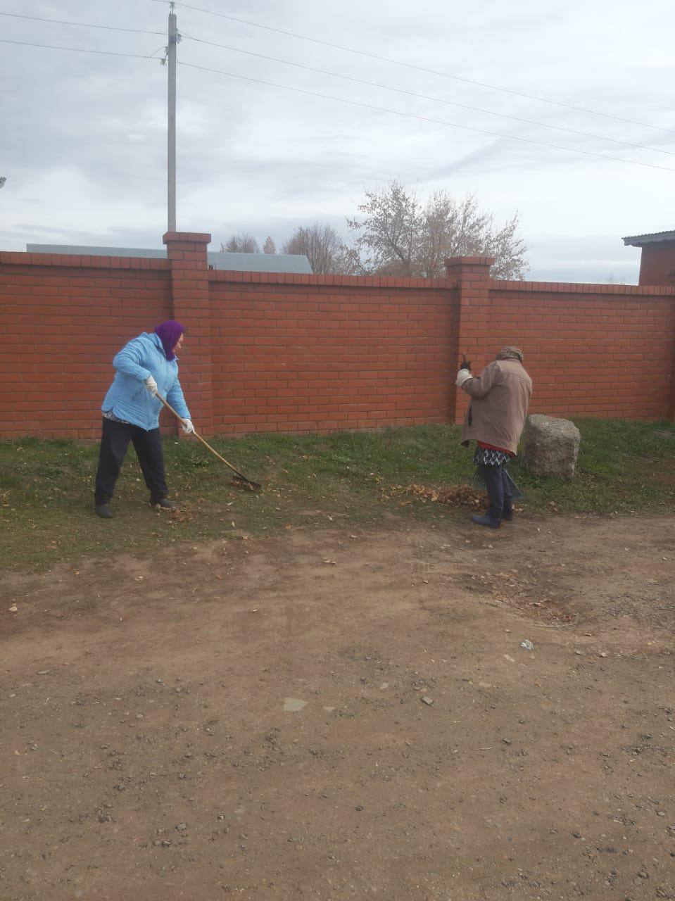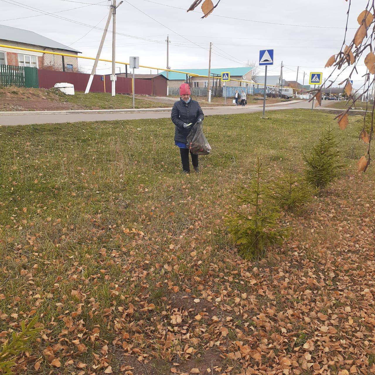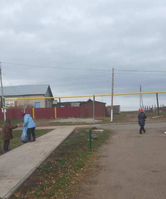 Жители и сотрудники детского сада села Мелекес присоединились к благоустройству, они вышли на уборку территории.