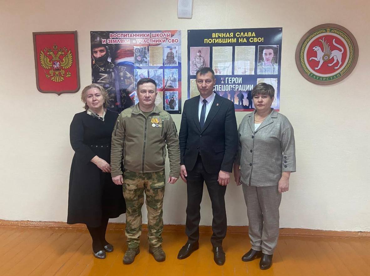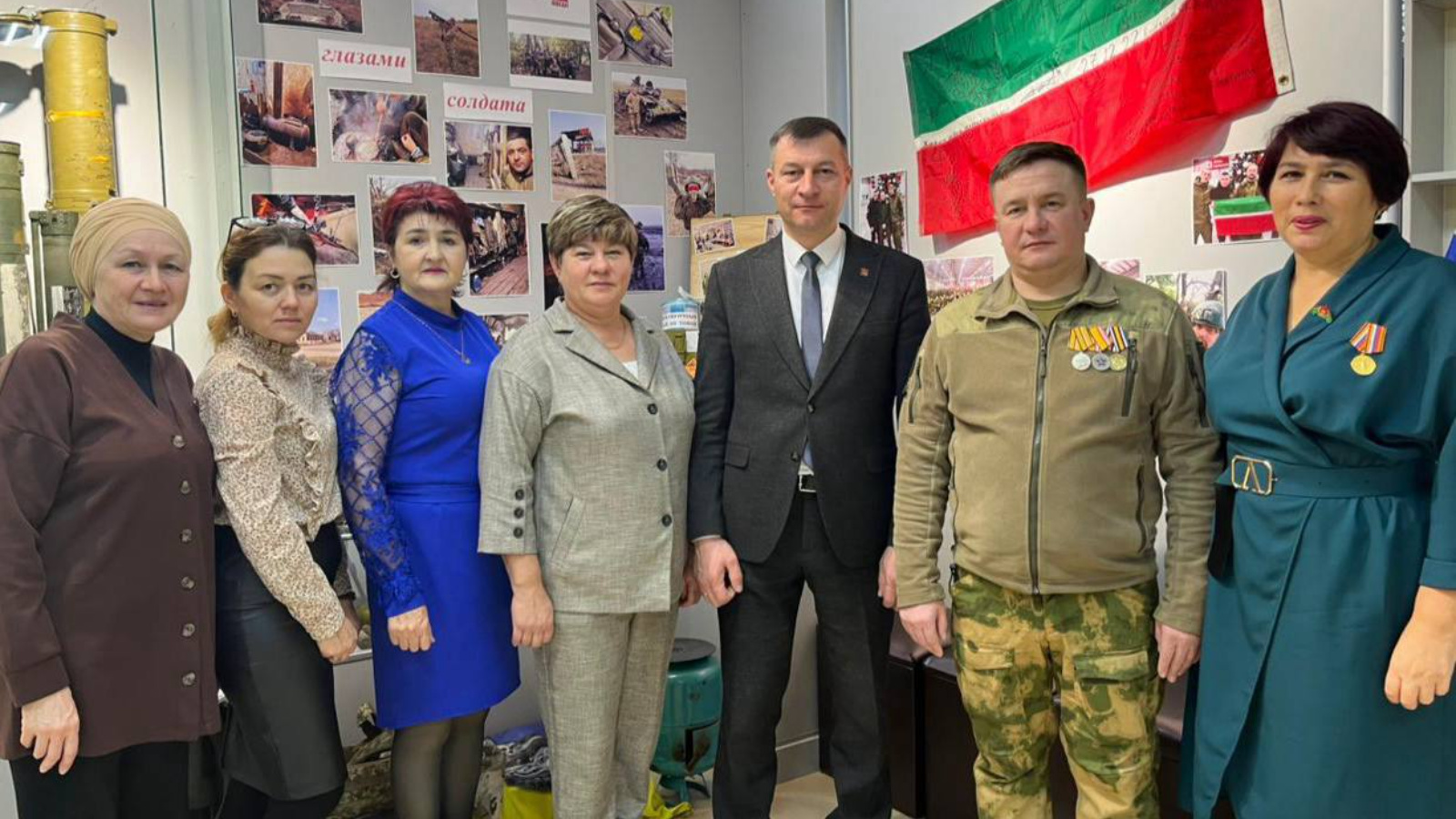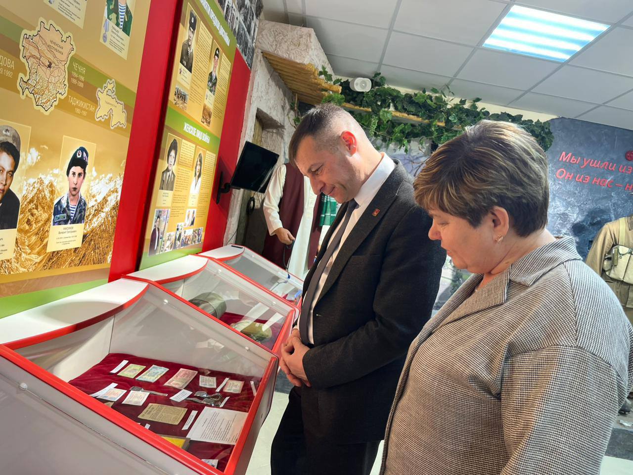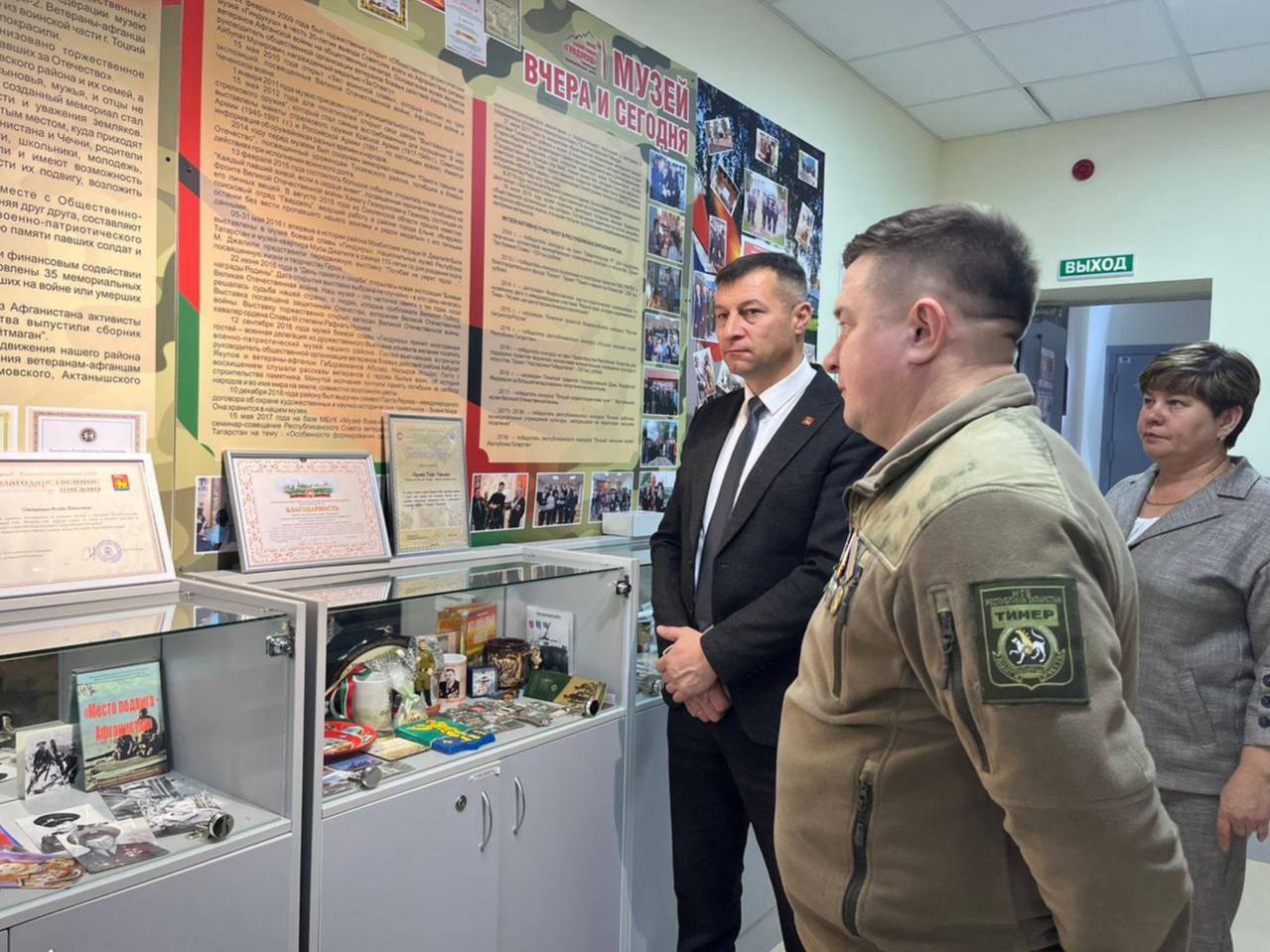 В рамках визита делегация также побывала в школе села Старое Абдулово, где бережно хранится память о земляках — участниках специальной военной операции.