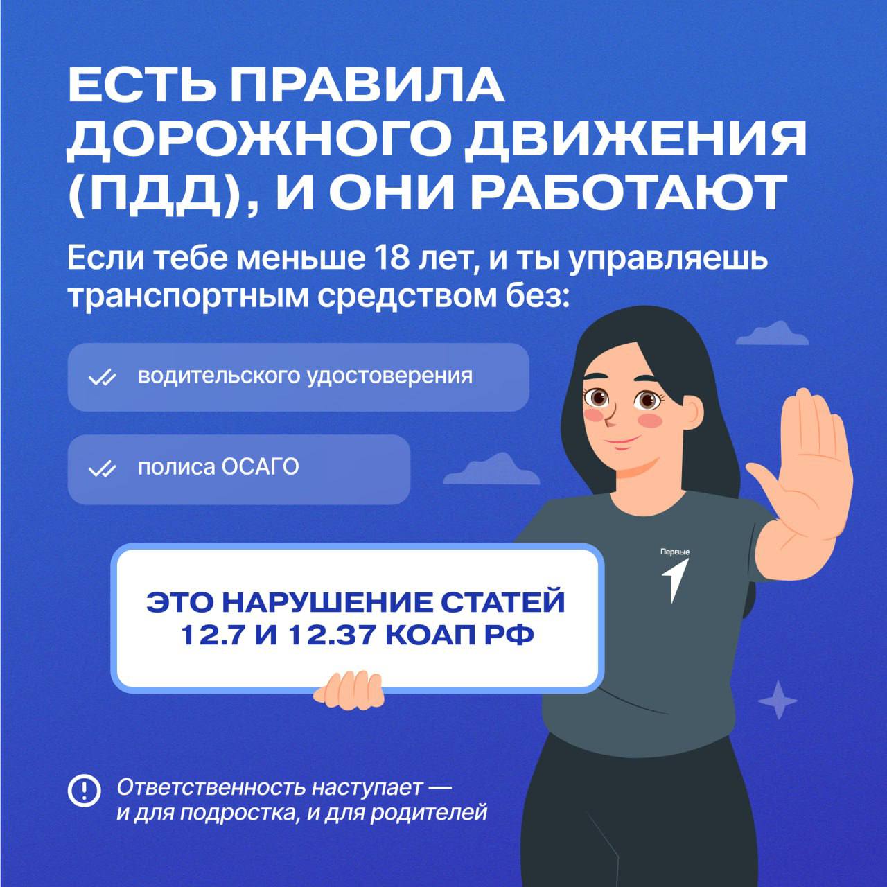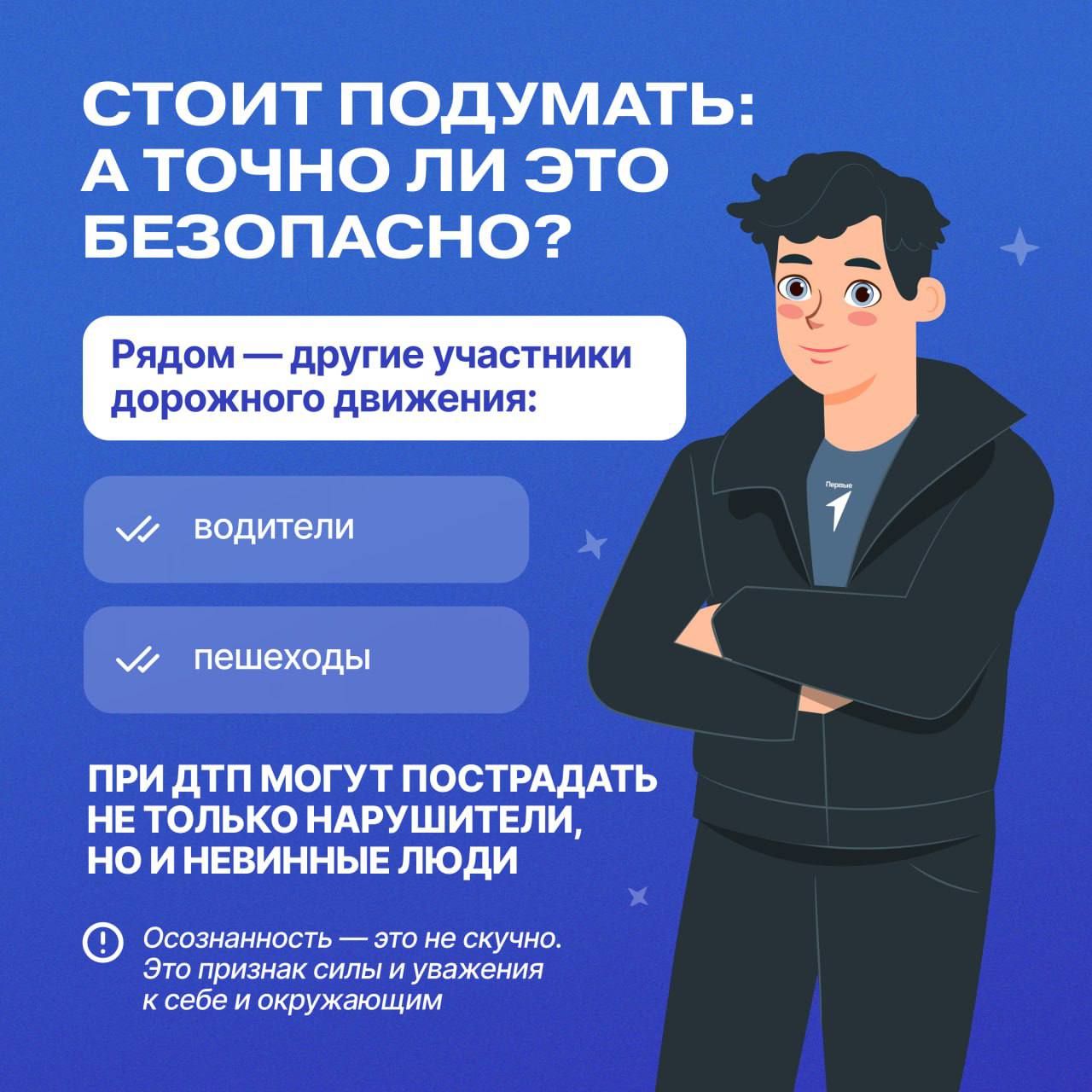 Движение Первых, Госавтоинспекция и Юные инспекторы движения подготовили карточки с важными советами по безопасности на дорогах.