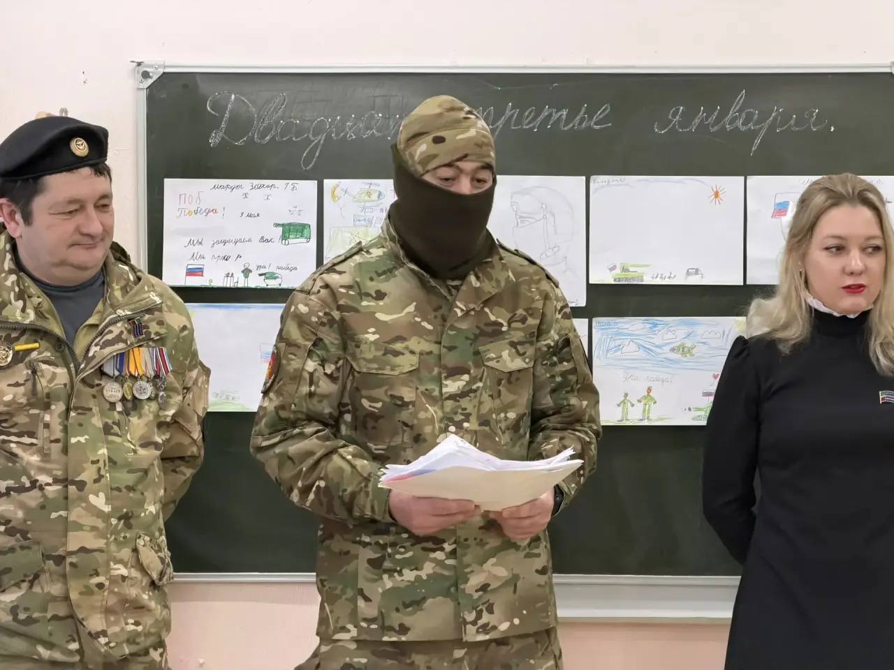 Во время службы он получил письма, среди которых были и послания от учеников 1 «Б» класса именно этой школы. Боец пришёл поблагодарить детей, которые отправили письма, отметив, что такие послания согревают бойцов на фронте.