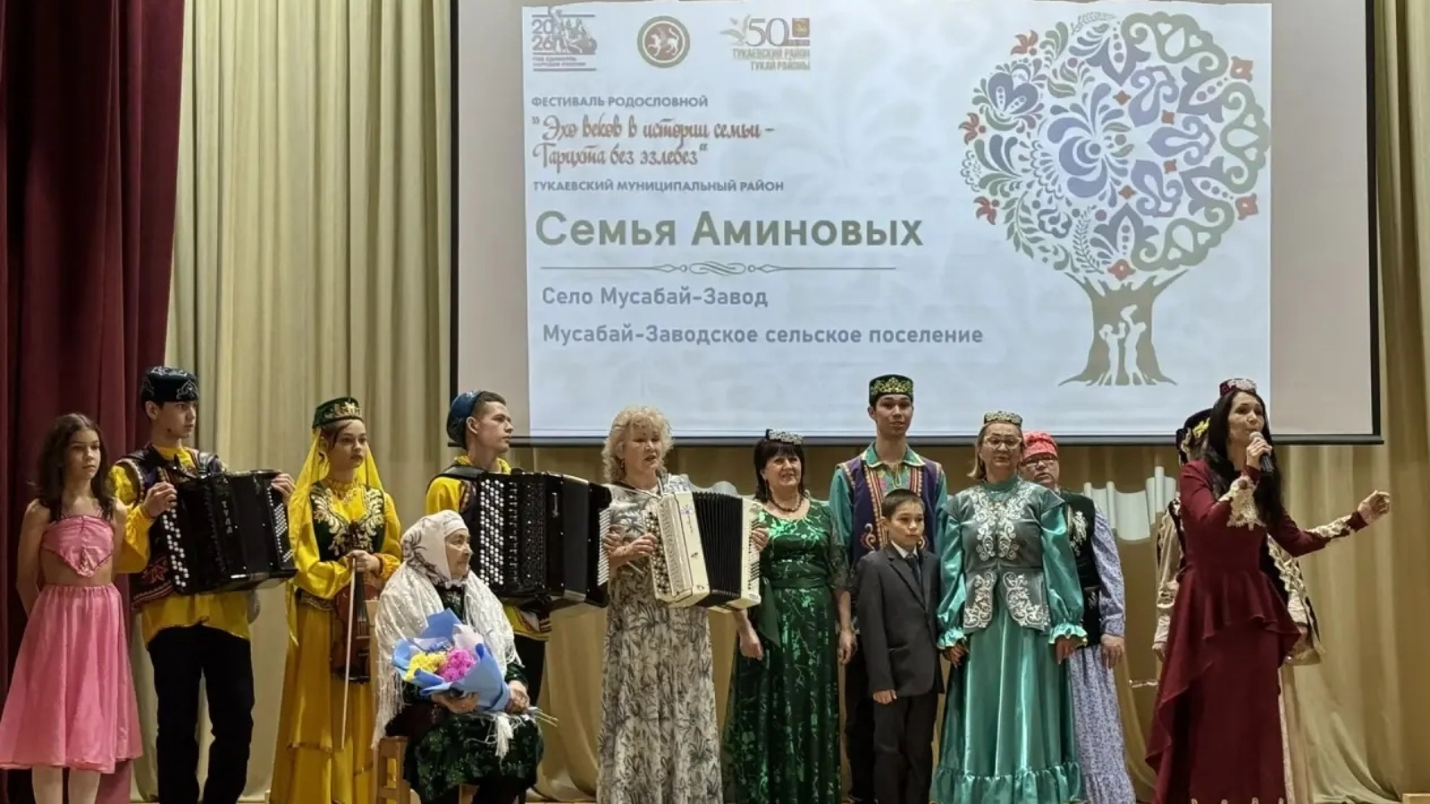 На сцене Дома культуры выступили три семьи района, представляя свои семейные традиции, а также блюда и концертные номера с презентацией родословных.