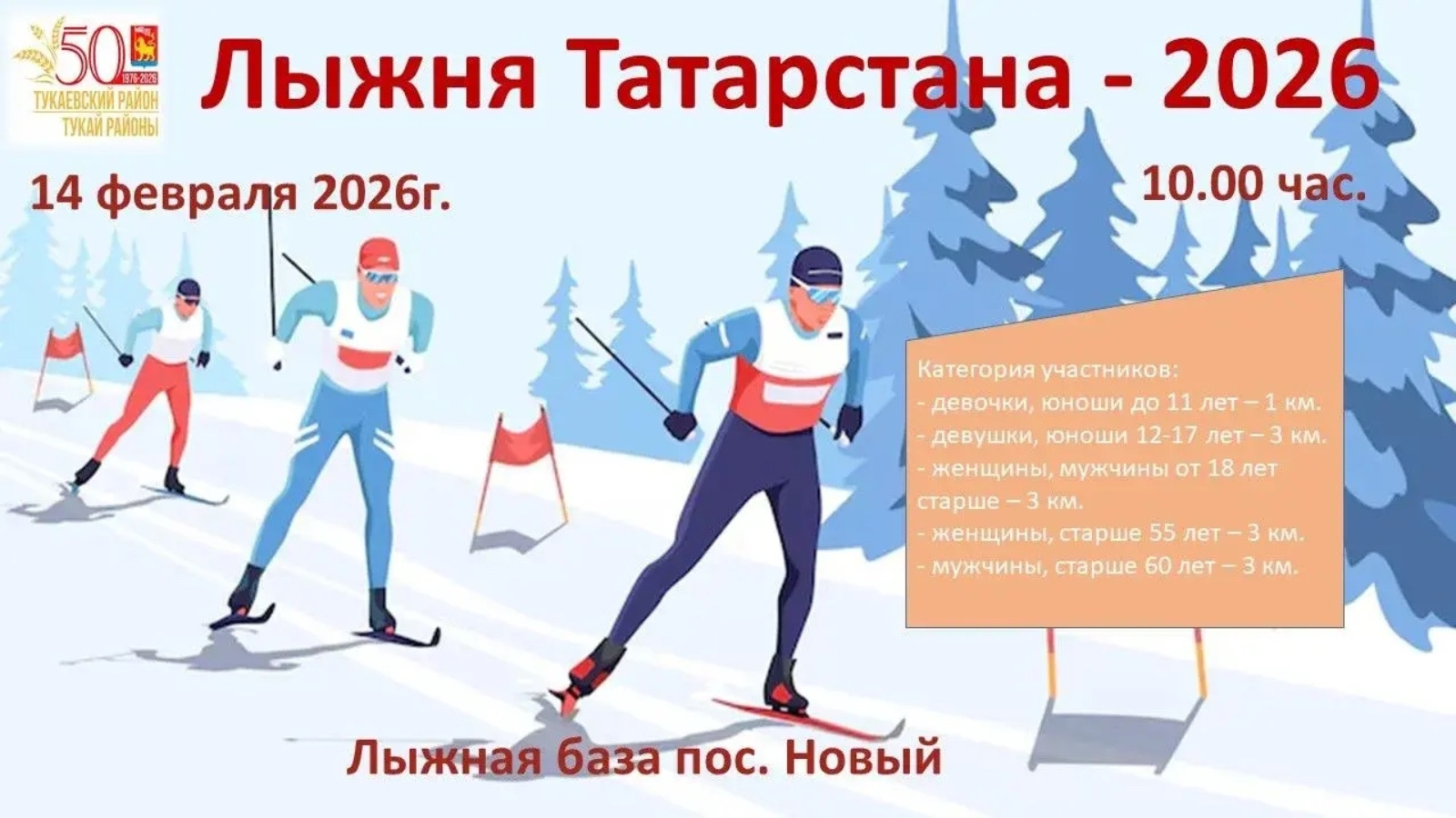 Приглашаем всех принять участие на массовых спортивных соревнованиях "Лыжня Татарстана 2026".