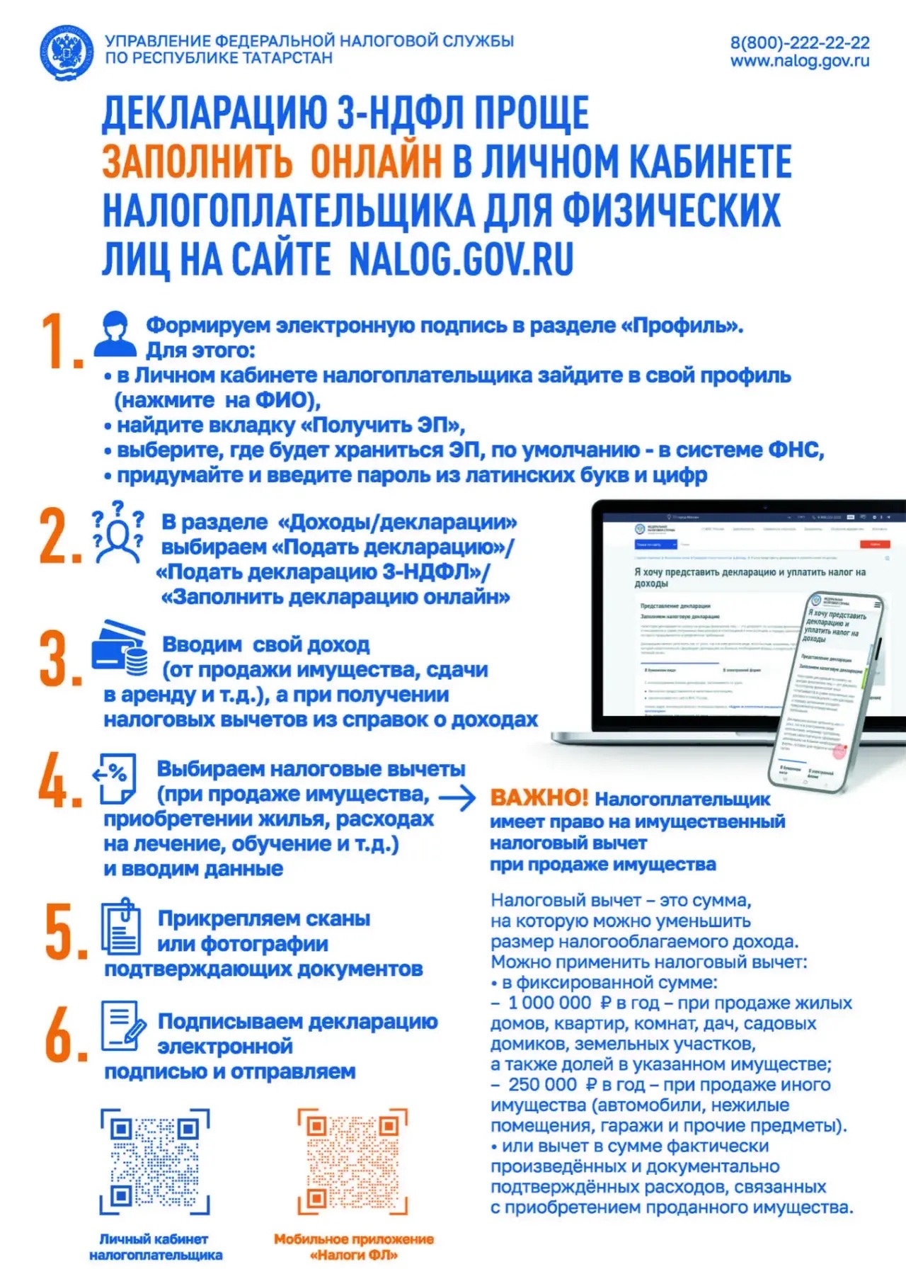 Управление ФНС России по Республике Татарстан напоминает о сроке подачи декларации 3-НДФЛ