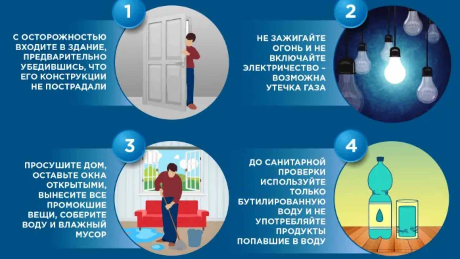 Получив предупреждение об угрозе наводнения (затопления), сообщите об этом вашим близким, соседям, окажите помощь престарелым и больным. В информации будет сообщено о времени и границах затопления, рекомендации жителям о целесообразном поведении и порядке эвакуации.