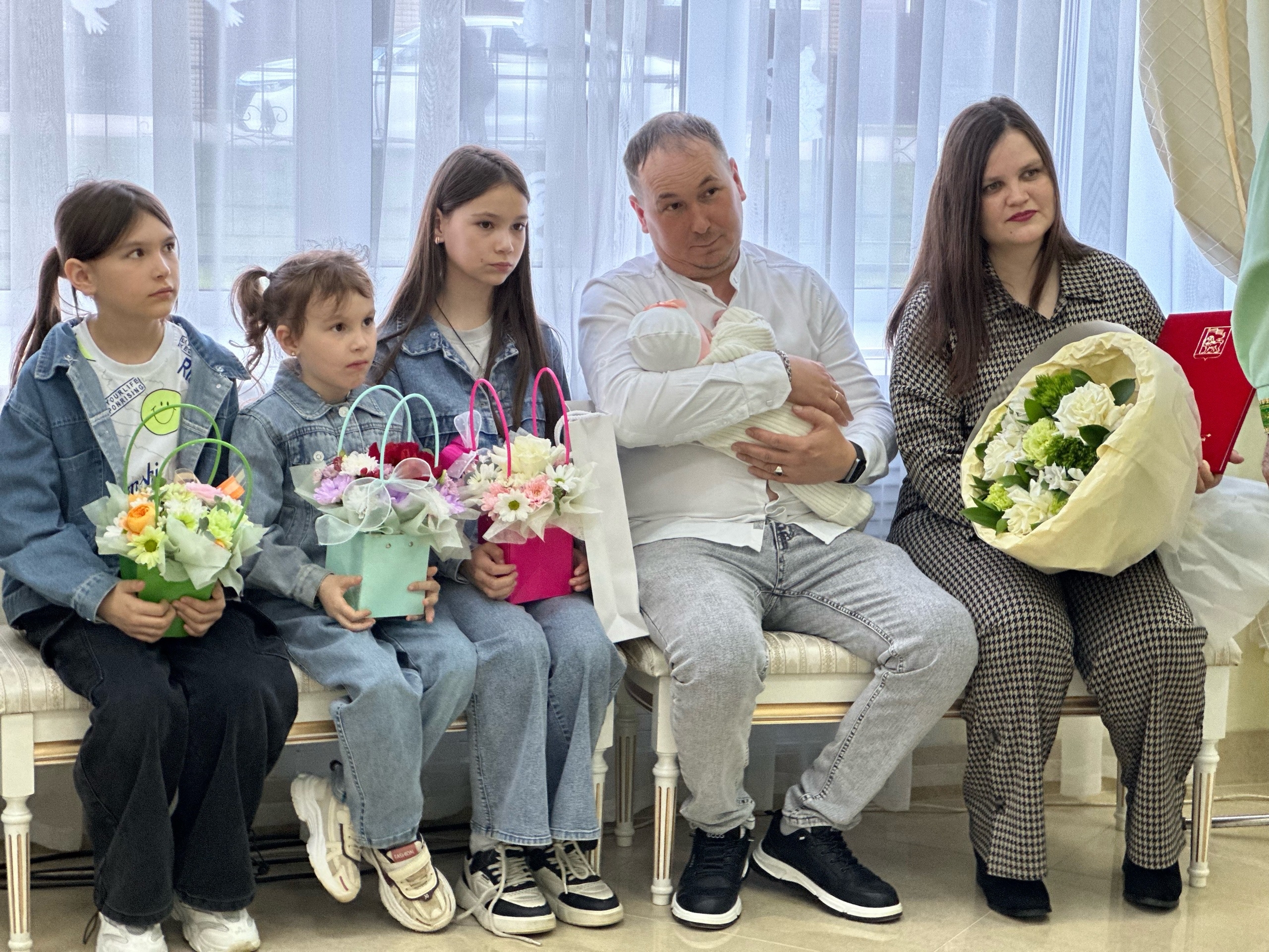 «Золотым» ребёнком стала малышка из Мусабай-Заводского поселения. Её родители, Динар и Алина Хамидуллины, назвали дочку Раяной. Сегодня глава района Камиль Назмиев лично поздравил многодетную семью с этим радостным событием.