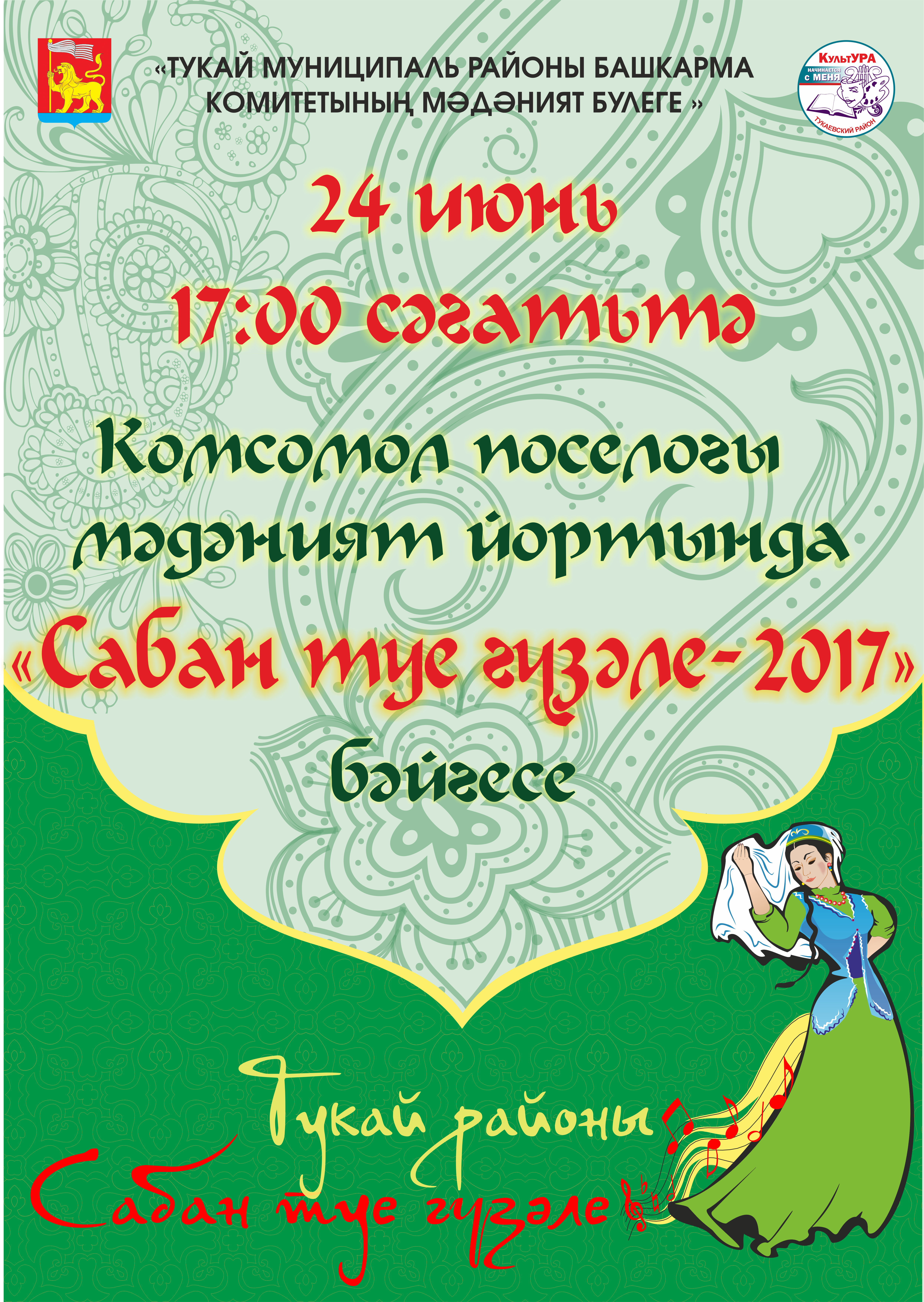 Восемь очаровательных, умелых девушек Тукаевского района 24 июня примут участие в конкурсе «Красавица Сабантуя – 2017». Данное мероприятие пройдет в доме культуры поселка Комсомолец, начнется в 17.00 часов. На звание красавицы будут претендовать Эльвина Бурганова из Тлянче-Тамака, Айсылу Гильфанова из Биюргана, Юлдус Мавлявиева из Старого Абдулово, Айза Нургалеева из Иштеряково, Гульназ Нурмеева из Бикляни, Ильвина Шагалиева из Мелекеса, Айгуль Шарафиева из Калмаша и Ралина Ванеева из Малой Шильны.