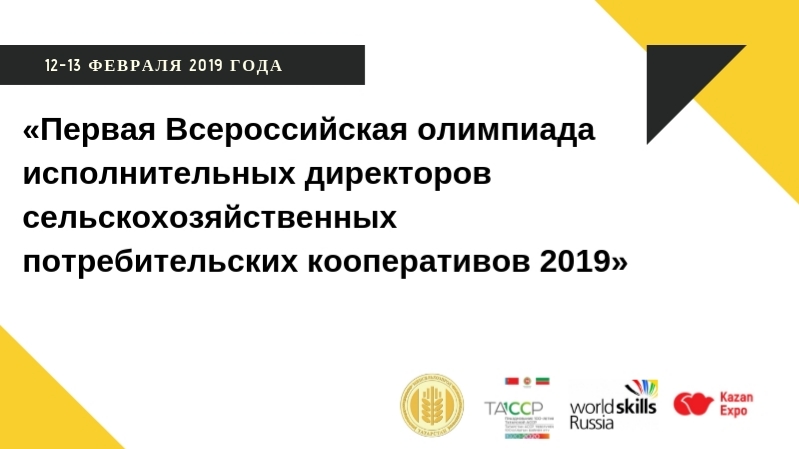2019 елның 12-13 февралендә Казанда Татарстан Республикасы Авыл хуҗалыгы һәм азык-төлек министрлыгының еллык коллегиясе кысаларында «Татарстан Республикасында авыл хуҗалыгы кооперациясен үстерү буенча компетенцияләр үзәге» ДБУ «Авыл хуҗалыгы кулланучылар кооперативлары башкарма директорларының Беренче бөтенроссия олимпиадасын - 2019» уздыра.