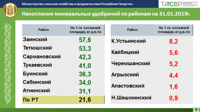 Агымдагы елда бер гектарга 70 кг-нан артык ашлама кертү бурычы куела. Шуңа күрә түбән күрсәткечле районнар активрак булырга тиеш. Мондый ярдәм бары тик 30 мартка кадәр генә саклана.