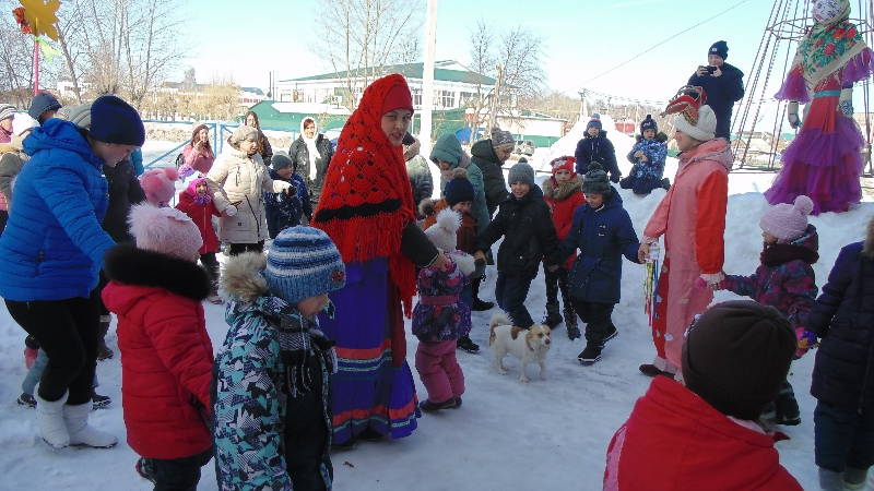 Клоун · шутлар олысын да, кечесен дә чүлмәк вату, капчык киеп йөгерү, себеркегә атланып тизлеккә чабу һәм башка кызыклы уеннарда катнашырга чакырып торды . Җиңүчеләр татлы призлар алды. Бәйрәм программасында «Россияочка» вокаль ансамбле, авыл үзешчәннәре, балалар һәм өлкәннәр әйлән-бәйлән уйнады.Барлык кунакларда кайнап торган самавырдан чәй эчте һәм коймаклар белән сыйландылар. Бәйрәм ахырында традицион карачкыны яндыру булды.