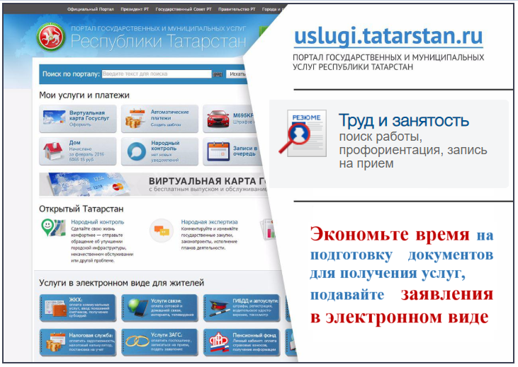 Татарстан Республикасы дәүләт һәм муниципаль хезмәтләр порталында хезмәтләр һәм сервислар Исемлеге uslugi.tatarstan.ru