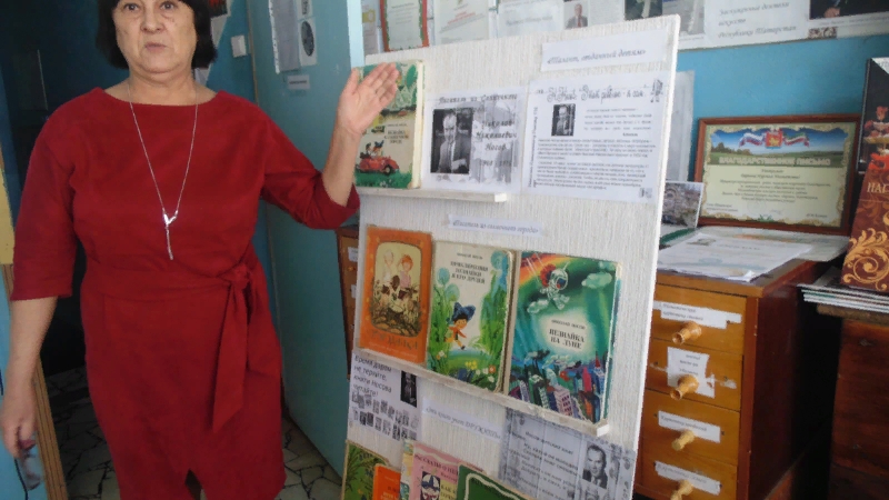 « Балаларга бирелгән талант » дип исемләнгән китап күргәзмәсе оештырылды . Авыл китапханәсе мөдире Бариева Нурзилә Нигъмәт кызы китап күргәзмәсенә күзәтү үткәрде, анда язучының танылган әсәрләре тәкъдим ителде. Әңгәмә слайдлар күрсәтү белән үрелеп барды, укучылар Николай Николаевич Носовның биографиясе һәм иң танылган әсәрләре һәм геройлары белән таныштылар.