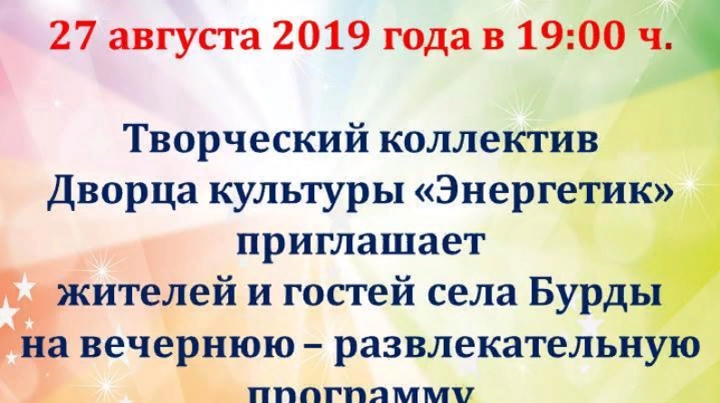 Зәй районының "Энергетик" мэдәният йорты коллективы Борды авылында "Иҗат юлы"дип аталган кичке-күңел ачу программасын оештыра. Борды авылы халкын һәм кунакларын 27 август көнне кичке 19.00 көтеп калабыз!