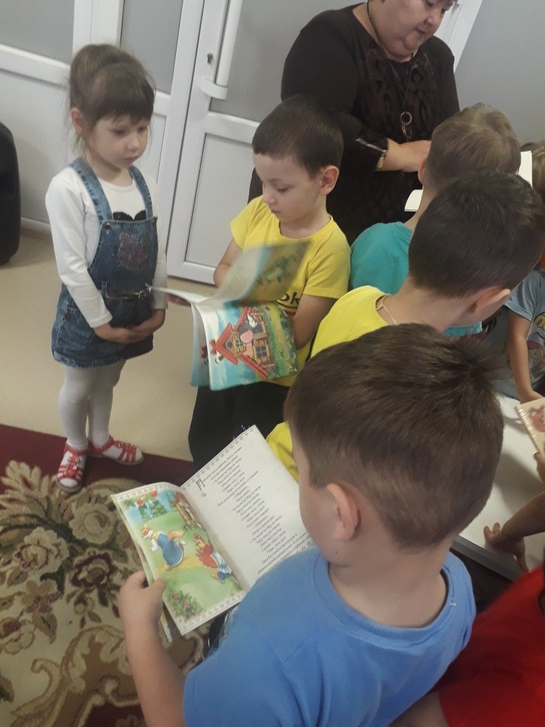 Аннан соң мультфильмнар һәм әдәби әсәрләр турында әңгәмә булды. Китап күргәзмәсендә Чиполино, Маугли, Колобка, Смешариклар, Кызыл калфак һәм башкалар турында китаплар урын алды. Балалар авторларны белделәр һәм китаплардагы иллюстрацияләрне карадылар.