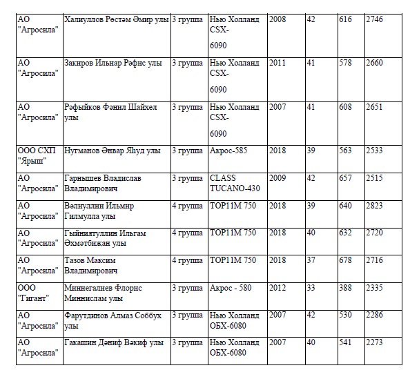 “Татарстан Республикасы агросәнәгать комплексының иң яхшы комбайнчысы” конкурсында җиңүчеләр исемлегендә Тукай районы ир-егетләре дә бар. Менә алар: