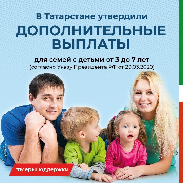 Президент Владимир Путин Федераль Җыенга Юлламасында әнә шундый ярдәм чарасын игълан итте. Тиешле указга 20 мартта кул куелды. Ярдәм чаралары бу елның 1 гыйнварыннан билгеләнгән. ✅ Түләү алу өчен гаризалар 2020 елның 1 июненнән кабул ителә.