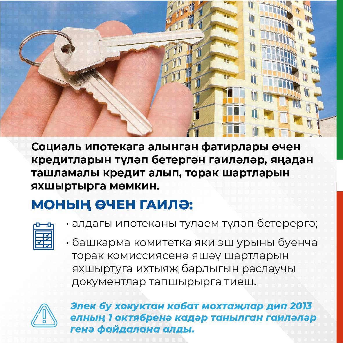 Тиздән Татарстанда социаль ипотека программасына үзгәрешләр керәчәк һәм анда катнаша ала торган гражданнар исемлеге артачак. Яңа шартлар буенча, социаль ипотека программасыннан бер тапкыр файдаланган кешеләр әлеге программага кабат кушыла ала. Бу хакта тулырак - безнең инфографикада.