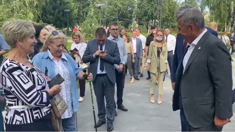 Скандинавия йөреше өчен таяклы ике хатын-кызны күргәч, Рөстәм Миңнеханов алардан паркта йөрү өчен ни дәрәҗәдә уңайлы булуы белән кызыксынды. "Көн саен монда йөрибез", - дип җавап бирделәр хатын-кызлар, территорияне төзекләндерү өчен ТР Президентына рәхмәт белдереп.