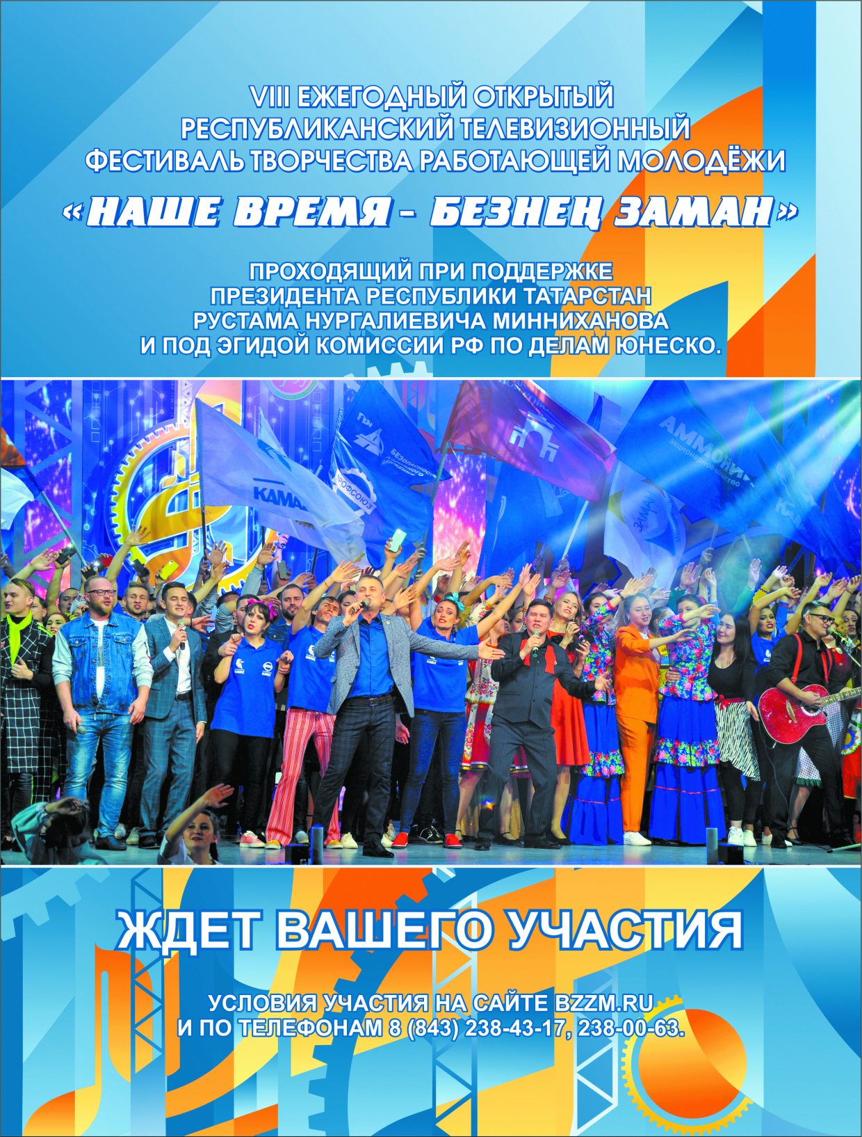 Татарстан Республикасында Татарстан Республикасы Президенты Р. Н.Миңнеханов ярдәме белән һәм ЮНЕСКО эшләре буенча Россия Федерациясе комиссиясе эгидасы астында узучы «Наше время – Безнең заман» эшче яшьләр иҗаты VIII ачык республика телевизион фестиваленә актив әзерлек бара.