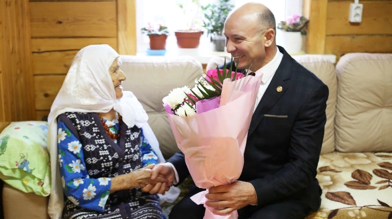 Тукай муниципаль районы башлыгы Фаил Камаев Бөек Ватан сугышы ветераны,тыл хезмәтчәне Фатыйма Әзһәмованы 95 яшьлек юбилее белән котлады. Район башлыгы,аңа Россия Президенты Владимир Путинның һәм Татарстан Президенты Рөстәм Миңнехановның котлавын җиткерде һәм Бөек Ватан сугышы елларында башкарылган изге эшләре өчен рәхмәт белдерде.