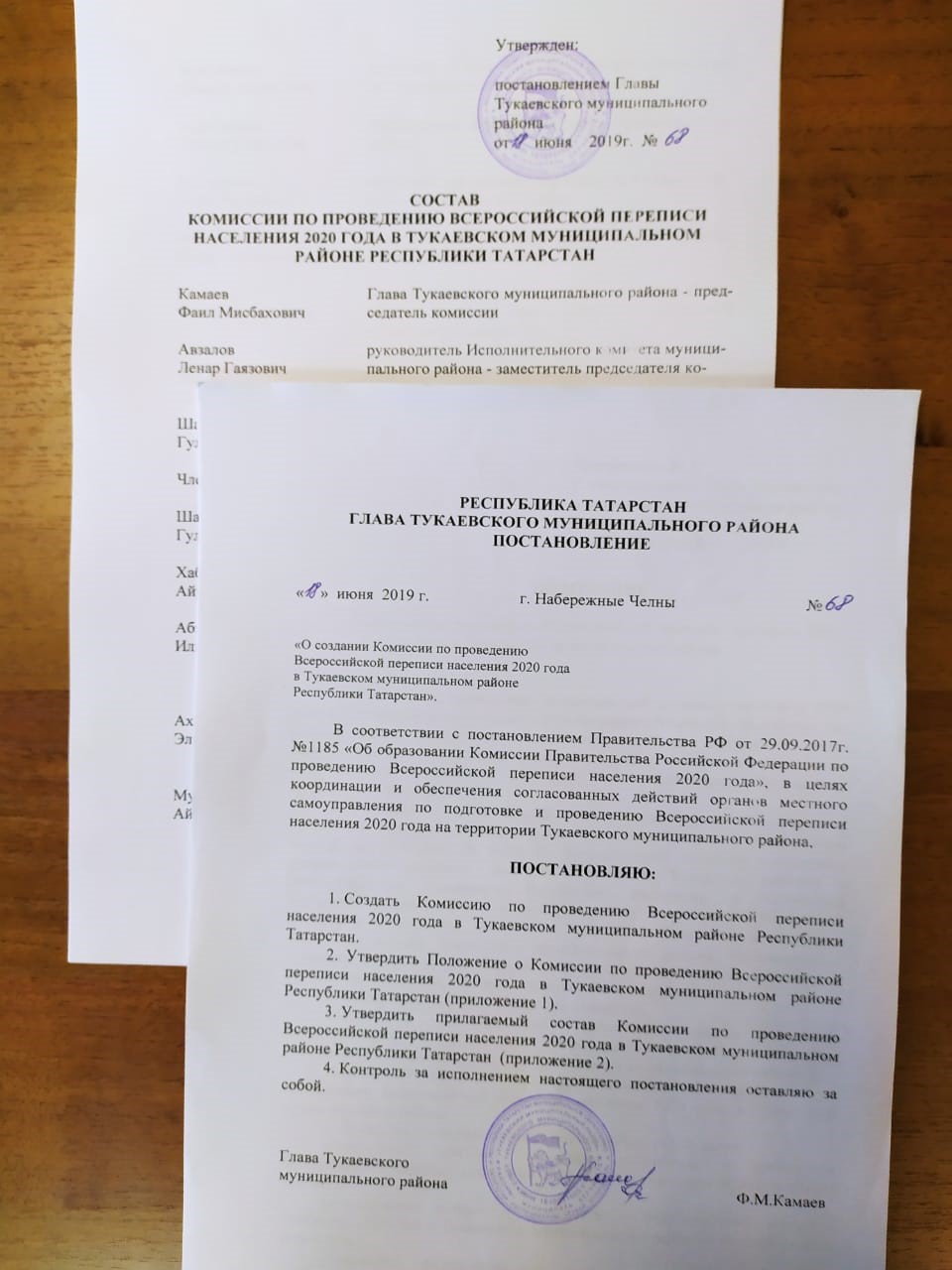 Район башлыгының 18.06.2009 елдагы 68 номерлы карары белән, мәсьәләләрне оператив хәл итү һәм башкарма хакимият органнарының үзара хезмәттәшлеген координацияләү максатыннан, Тукай муниципаль районы территориясендә 2020 елгы Бөтенроссия халык санын алуны үткәрү буенча Комиссия төзелде, аның составы расланды һәм комиссия турында Нигезләмә эшләнде.