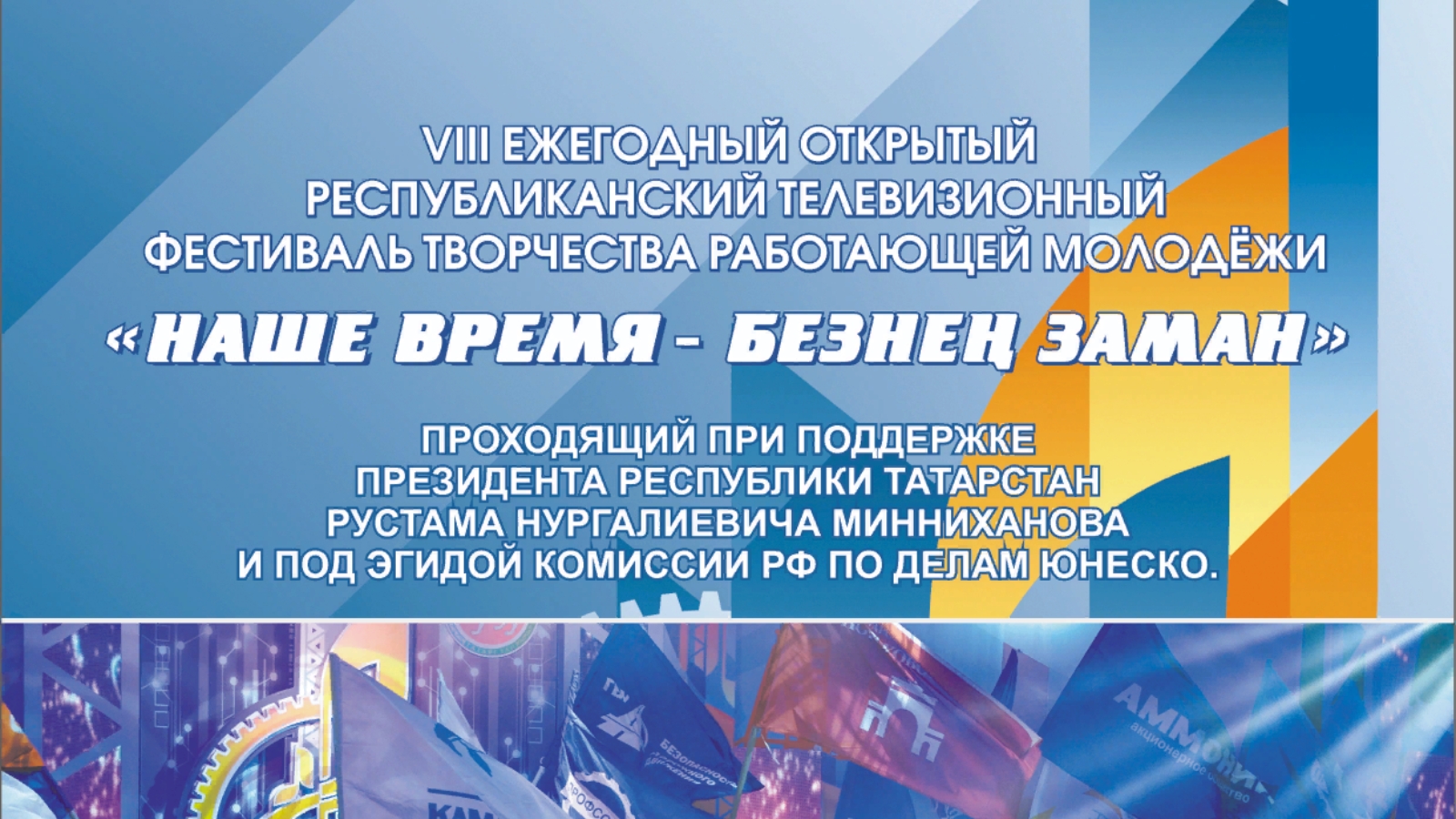 Татарстанда эшче яшьләрнең ел саен уздырыла торган «Наше время – Безнең заман» VIII ачык республика телевизион иҗат фестиваленә гаризалар кабул итү 25-нче сентябрьгә кадәр дәвам итә. Фестивальдә катнашырга 18 яшьтән 45 яшькә кадәрге кешеләр чакырыла. Фестиваль ТАССРның 100 еллыгына һәм Бөек Ватан сугышында Җиңүнең 75 еллыгына багышланачак.