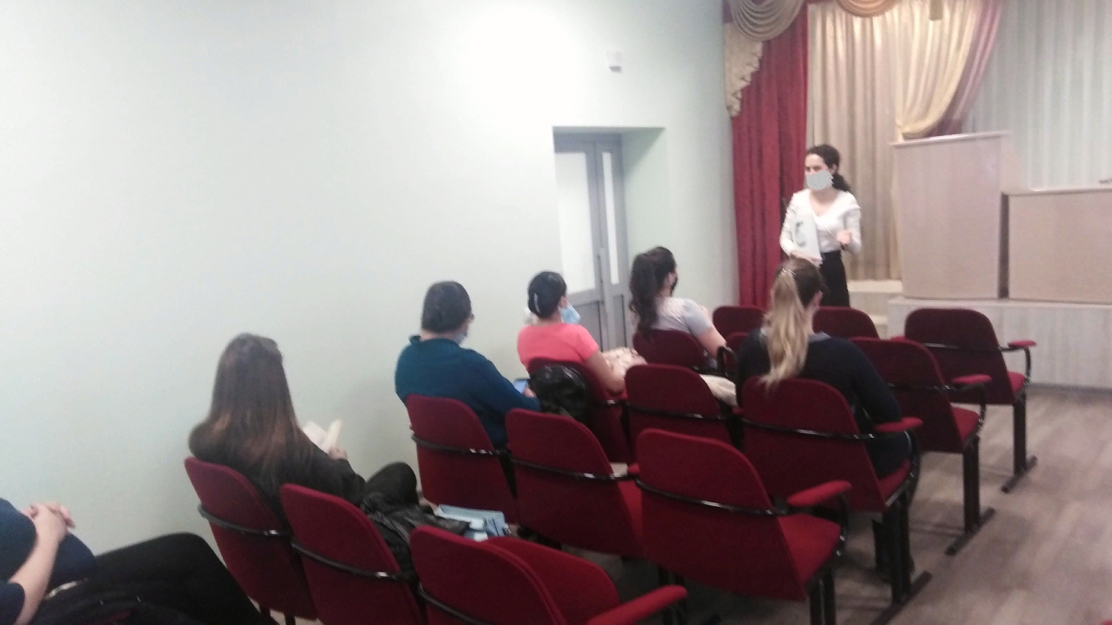 Йөклеләр белән практик дәрес вакытында шулай ук «Эчке елмаю», аутотренинг, сулыш алу күнегүләре үткәрелде, кире элемтә уздырылды, депрессив симптоматика ачыкланган очракта ярдәм күрсәтү өчен үзәк контакт мәгълүматлары бирелде.