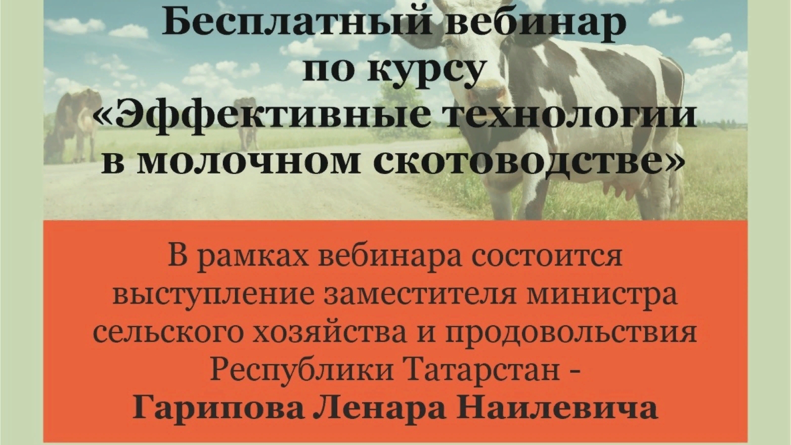Татарстан Республикасы Авыл хуҗалыгы һәм азык-төлек министрлыгы хәбәр итүенчә, 22 октябрьдә 14:00 сәгатьтә «Агрополия» бердәм белем бирү платформасында чираттагы бушлай вебинар узачак, ул сөт терлекчелегендә нәтиҗәле технологияләргә багышлана.