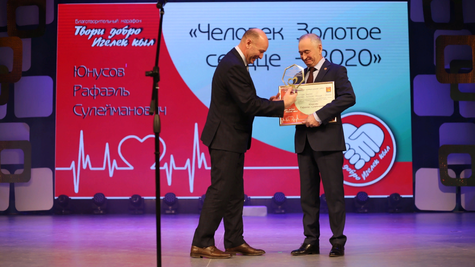 Марафонда Тукай муниципаль районында яшәүчеләргә зур һәм күпкырлы хәйрия ярдәме өчен "Чаллы икмәге "акционерлык җәмгыяте генераль директоры Юнысов Рафаэль Сөләйман улына" Алтын йөрәкле кеше " дигән мактаулы исем бирелде