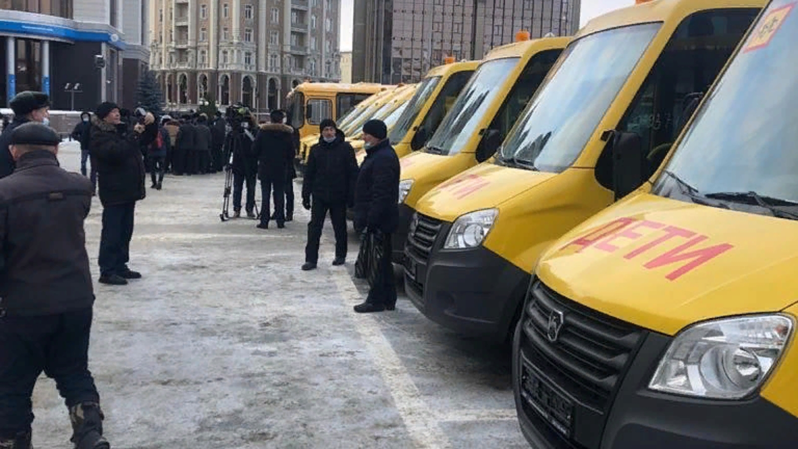 Чара Татарстан Республикасы Дәүләт Советы бинасы каршындагы мәйданда узды, символик ачкычны тапшыру тантанасында республиканың муниципаль районнары вәкилләре катнашты. Бүген мәктәп автобусларынан башка һич ярамый, диде Рөстәм Миңнеханов, бүген балаларны балачагымдагы кебек – атта, борт машинасында йөртмиләр.
