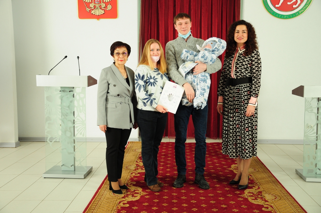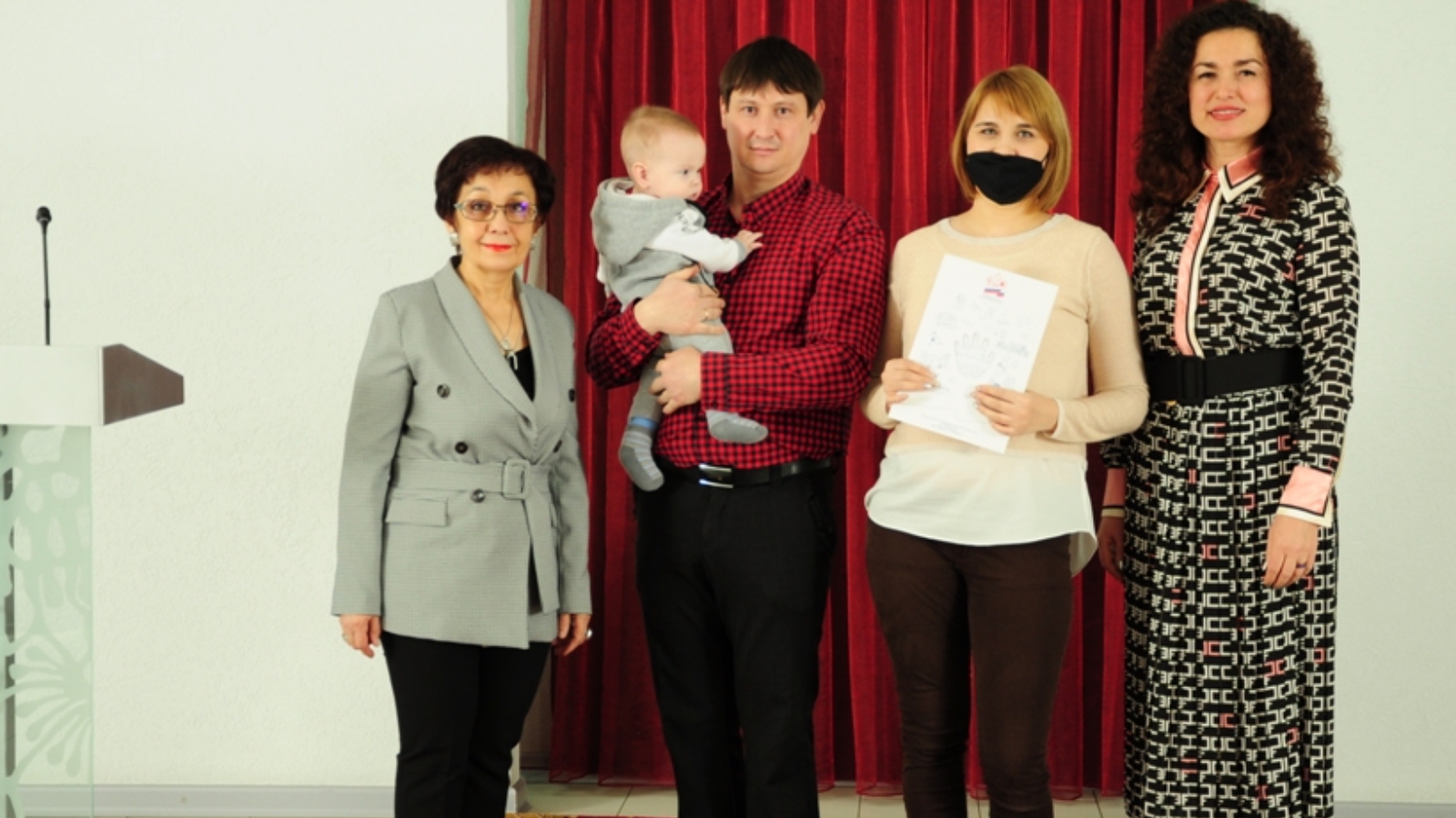 ГХАТ идарәсе җитәкчесе Равилә Зарипова һәм Пенсия фонды идарәсе җитәкчесе урынбасары Татьяна Мульканова әти-әниләрне котладылар һәм ике Тукай гаиләсенә сертификатлар тапшырдылар.