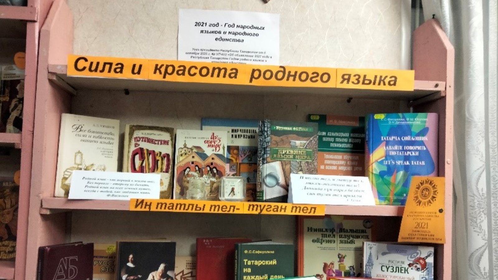 Комсомолец авыл китапханәсендә "Туган телләр һәм Халыклар бердәмлеге елы" уңаеннан китап күргәзмәсе төзелде