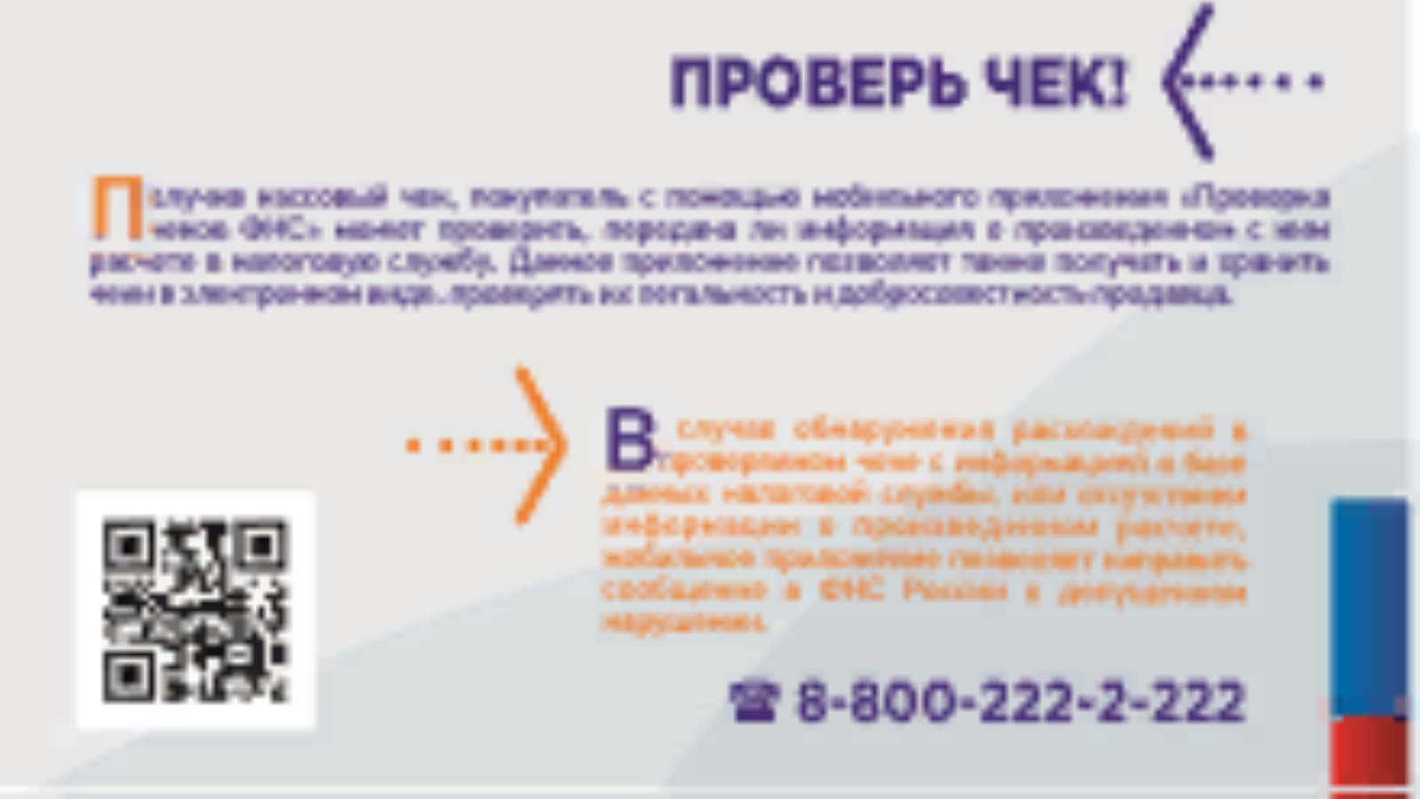 Россия Федераль салым хезмәтенең Татарстан Республикасы буенча 9 нчы номерлы районара ФНС идарәсе "Чек сора! Чекны тикшер!»дигән белешмә бирә.