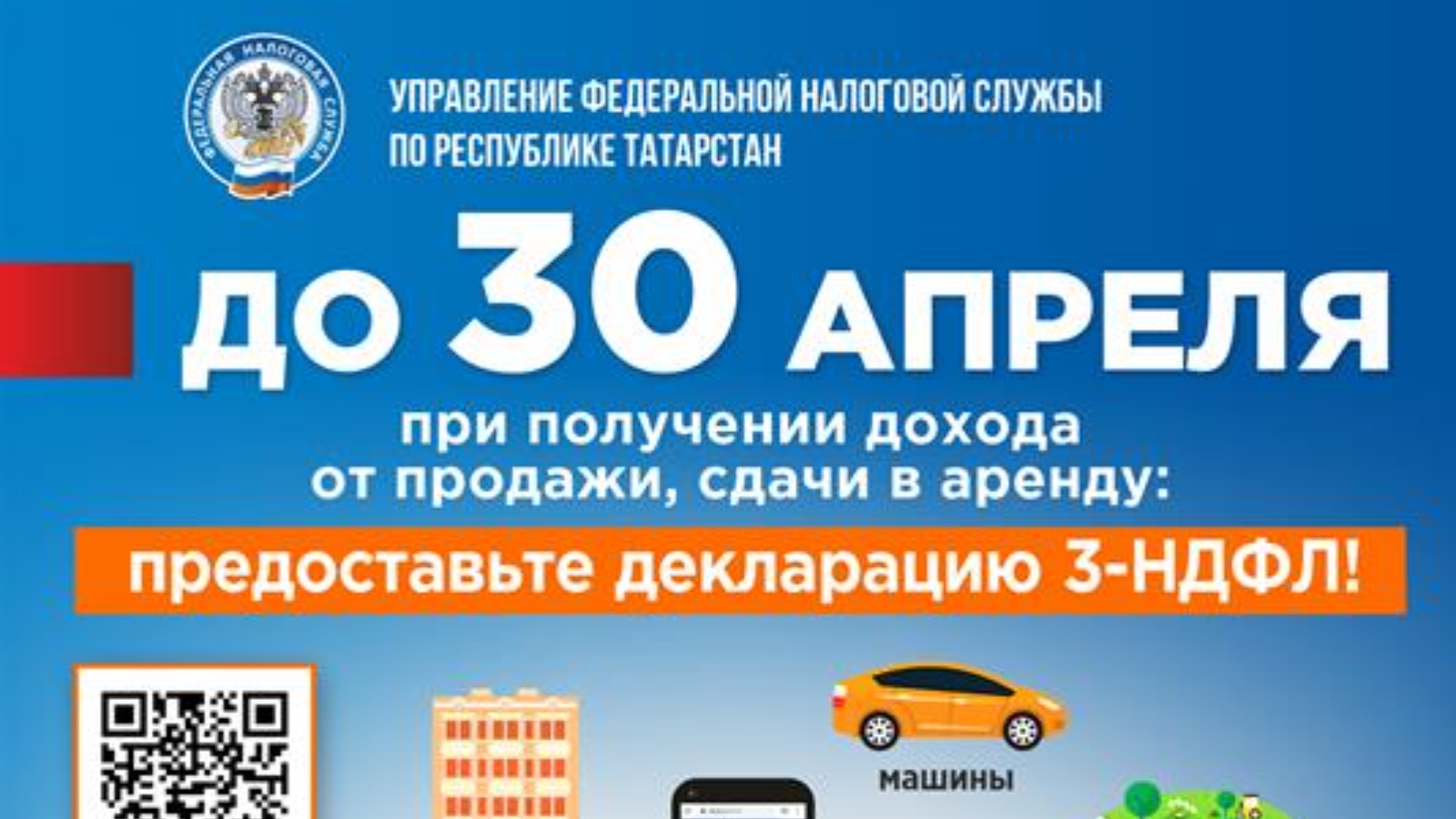 Россия Федераль салым хезмәтенең Татарстан Республикасы буенча 9 нчы районара Федераль салым хезмәте идарәсеннән килгән хатны үтәү йөзеннән. 01721, 10.02.20021 ел, салым түләүчеләр белән мәгълүмати эш кысаларында "30 апрельгә кадәр 3-НДФЛ декларациясен тапшырыгыз" дигән темага материал җибәрә