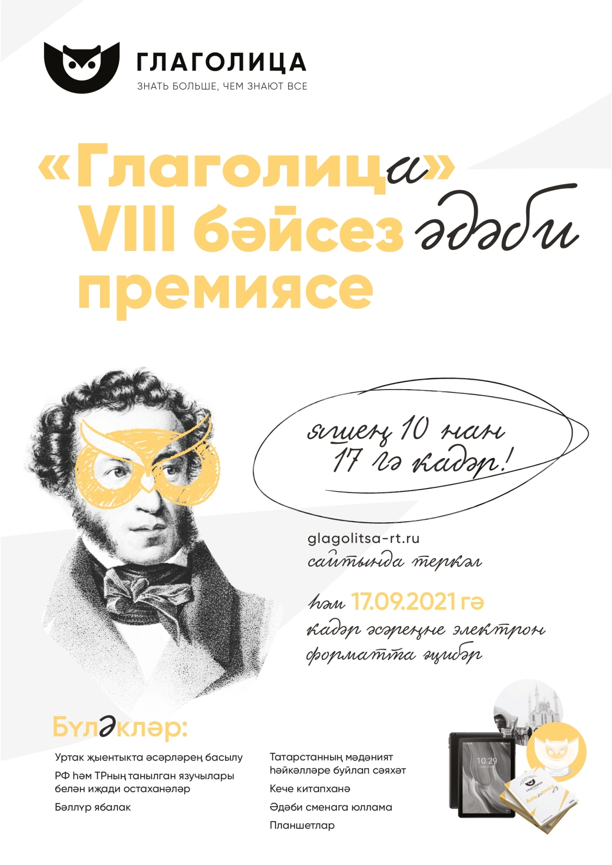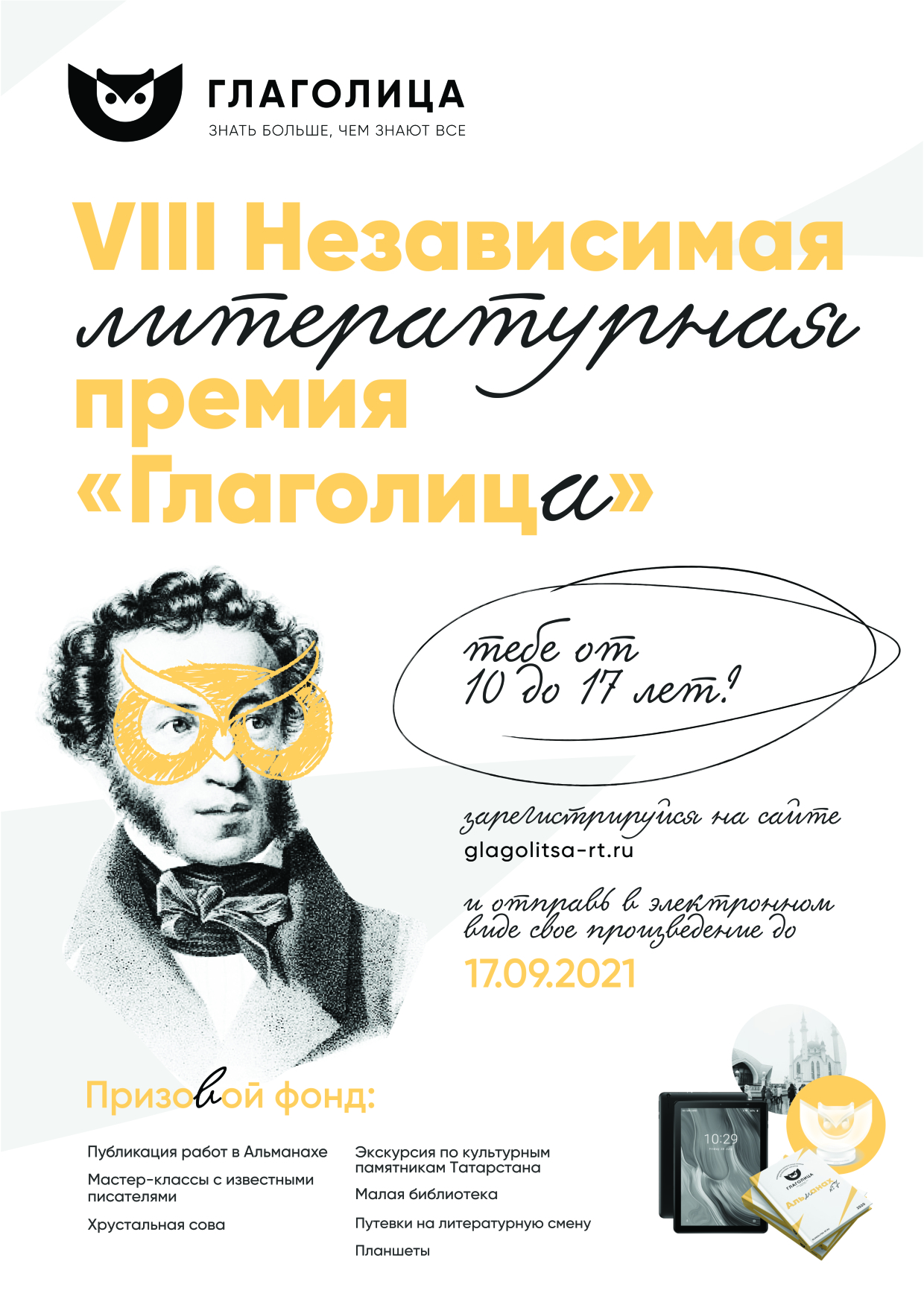 10-17 яшьлек балалар өчен «Глаголица " VIII бәйсез әдәби премиягә гаризалар кабул итү дәвам итә. www.glagolitsa-rt.ru