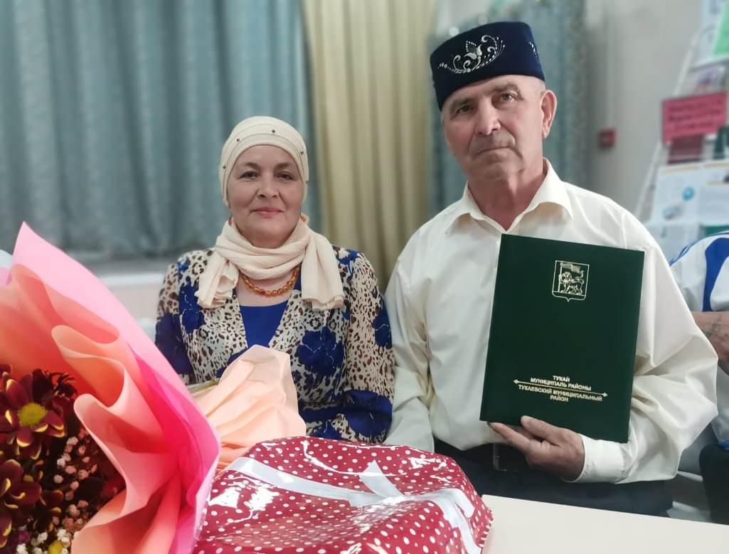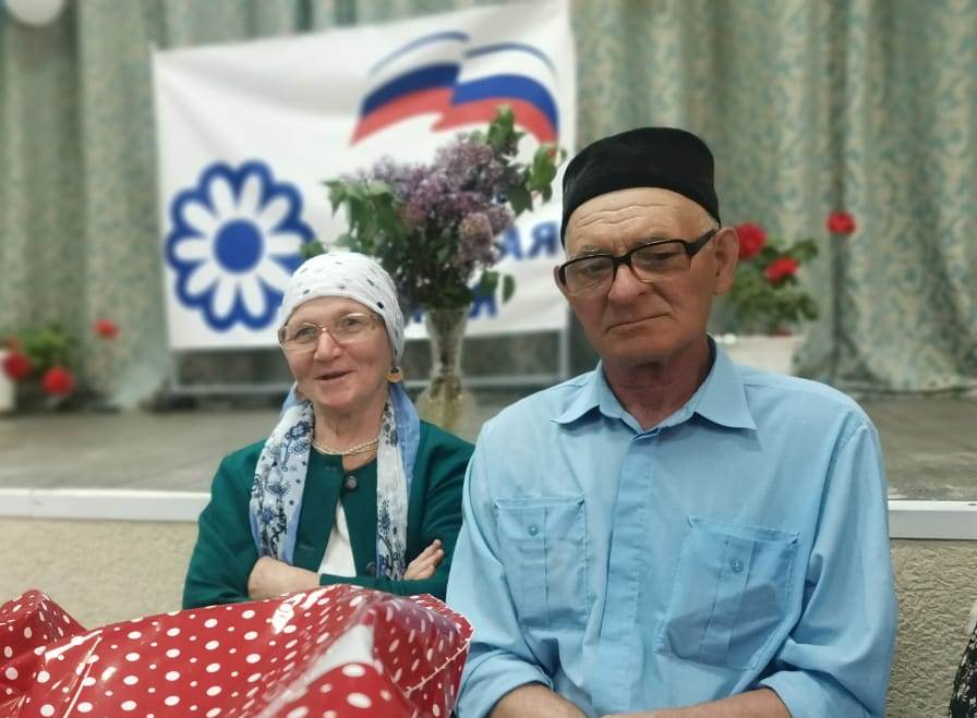 Әхмәтнур һәм Фәйрүзә Хөсәеновлар-алтын юбилярлар, 50 ел бергә гомер итүләрен билгеләп үттеләр.