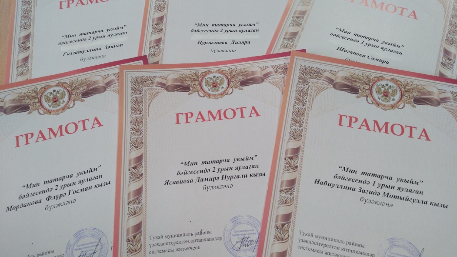 Күзкәй китапханәсе укучылары район куләмендә узган "Мин татарча укыйм" конкурсында актив катнаштылар һәм 6 грамота белән буләкләнделәр,аларны зур җиңүләре белән котлыйм,дип яза китапханә мөдире Тәнзилә Шайхнурова