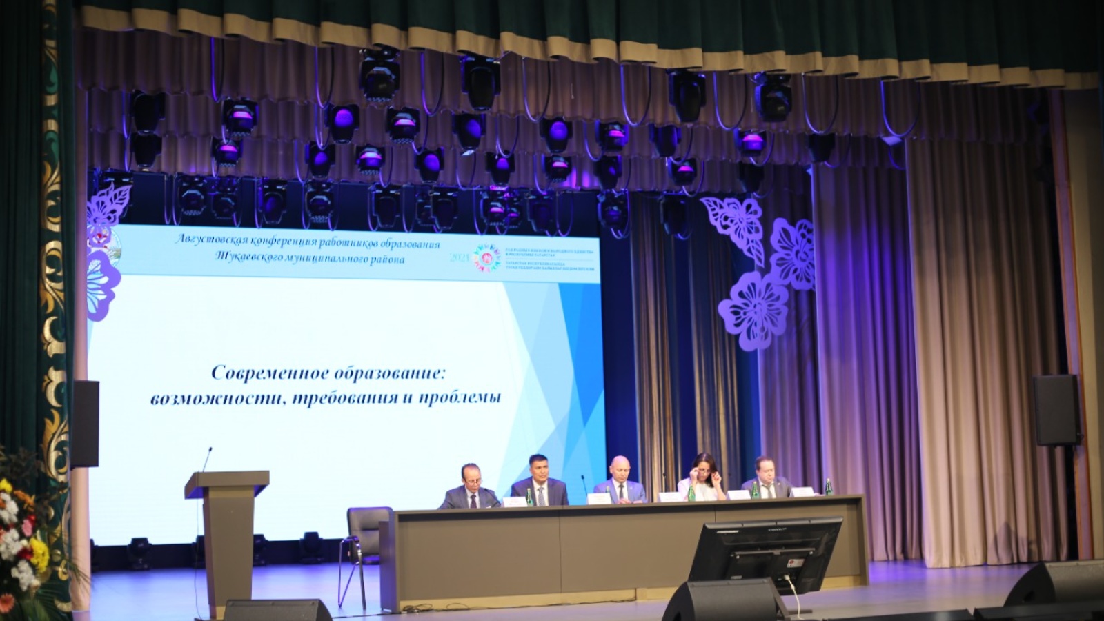 Август конференциясе эшендә район башлыгы Фаил Камаев, ТР мәгариф өлкәсендә күзәтчелек һәм контроль департаменты җитәкчесе урынбасары Светлана Захарова, район мәгариф идарәсе җитәкчесе Айрат Ибраһимов , РФ Пенсия фондының ТР буенча бүлеге идарәчесе Эдуард Вафин,мәктәп директорлары, яшь белгечләр, ветераннар,авыл җирлекләре башлыклары,хокук саклау органнары, предприятие, авыл хуҗалыгы оешмалары, оешма җитәкчеләре, район Советы аппараты һәм Башкарма комитеты хезмәткәрләре катнашты .