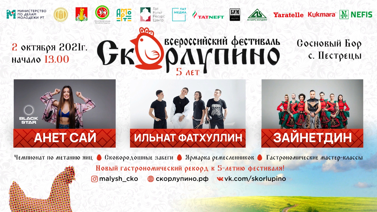 2012 елның 2 октябрендә Питрәч районының Питрәч авылының Сосновый борында 5 нче юбилей «Скорлупино» (алга таба-Фестиваль) фестивале узачак, аны Татарстан Республикасы Питрәч муниципаль районы Башкарма комитеты һәм «Татарстан Республикасы Аграр яшьләр берләшмәсе»төбәк иҗтимагый оешмасы оештыра.