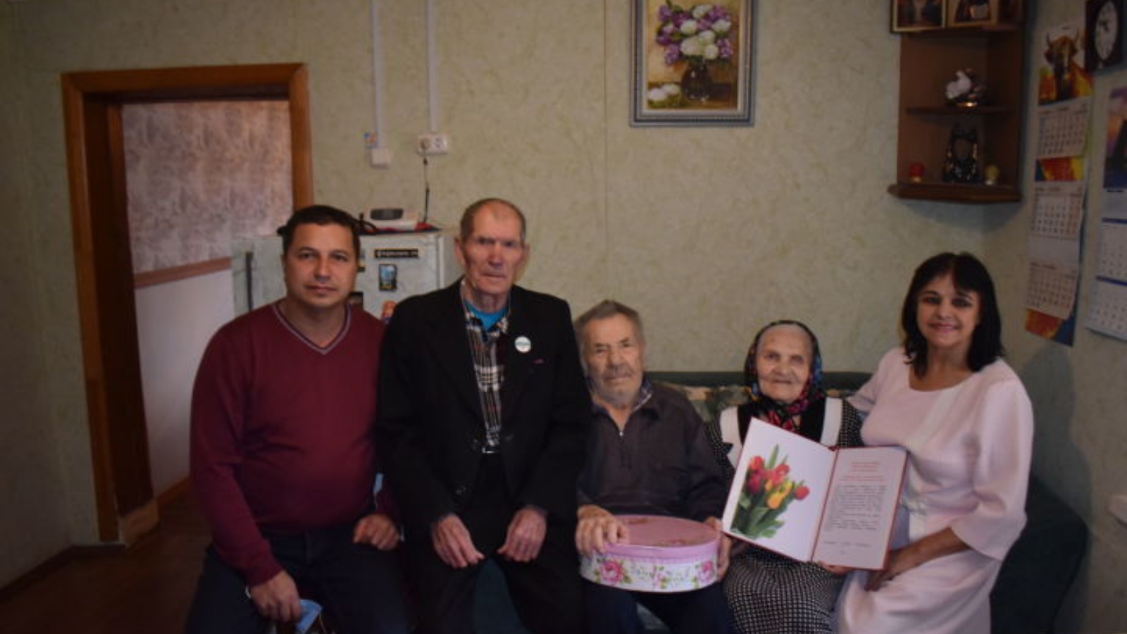 Княз авыл җирлеге башлыгы Фәндәс Камалов, мәдәният йорты хезмәткәрләре, ветераннар һәм инвалидлар советы Ольга Афанасьевна һәм Николай Федорович Федотовларны 65 ел бергә гомер итүләре белән котладылар.