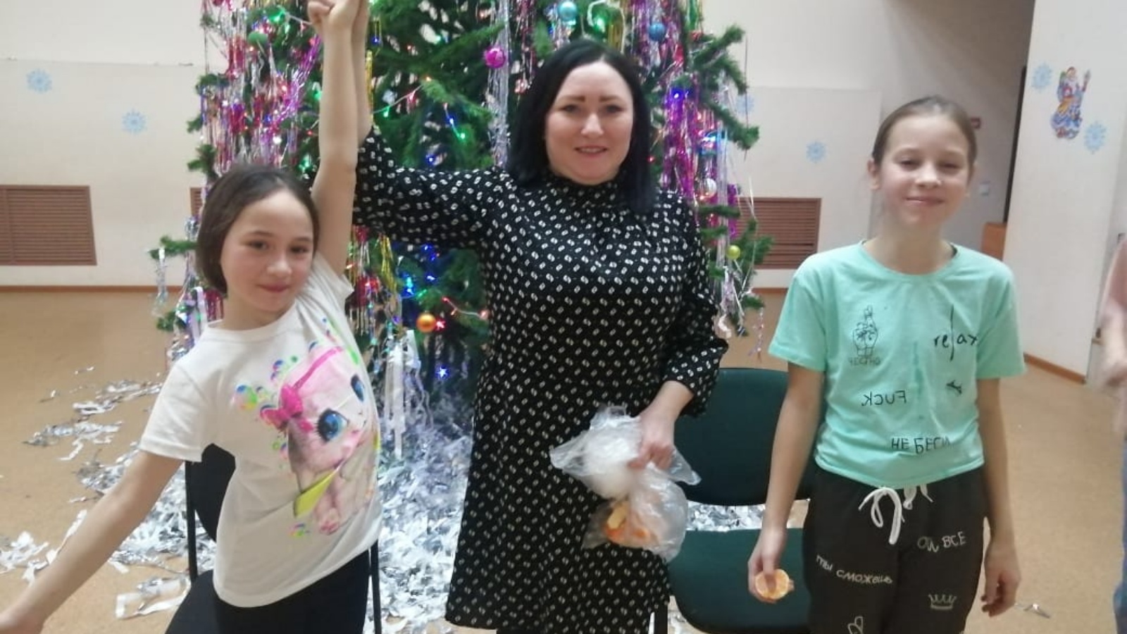 Княз мәдәният йортында балалар белән чыршы тирәли " Исәнме, Яңа ел! дигэн уен программасында 7-12 яшьлек балалар катнашты