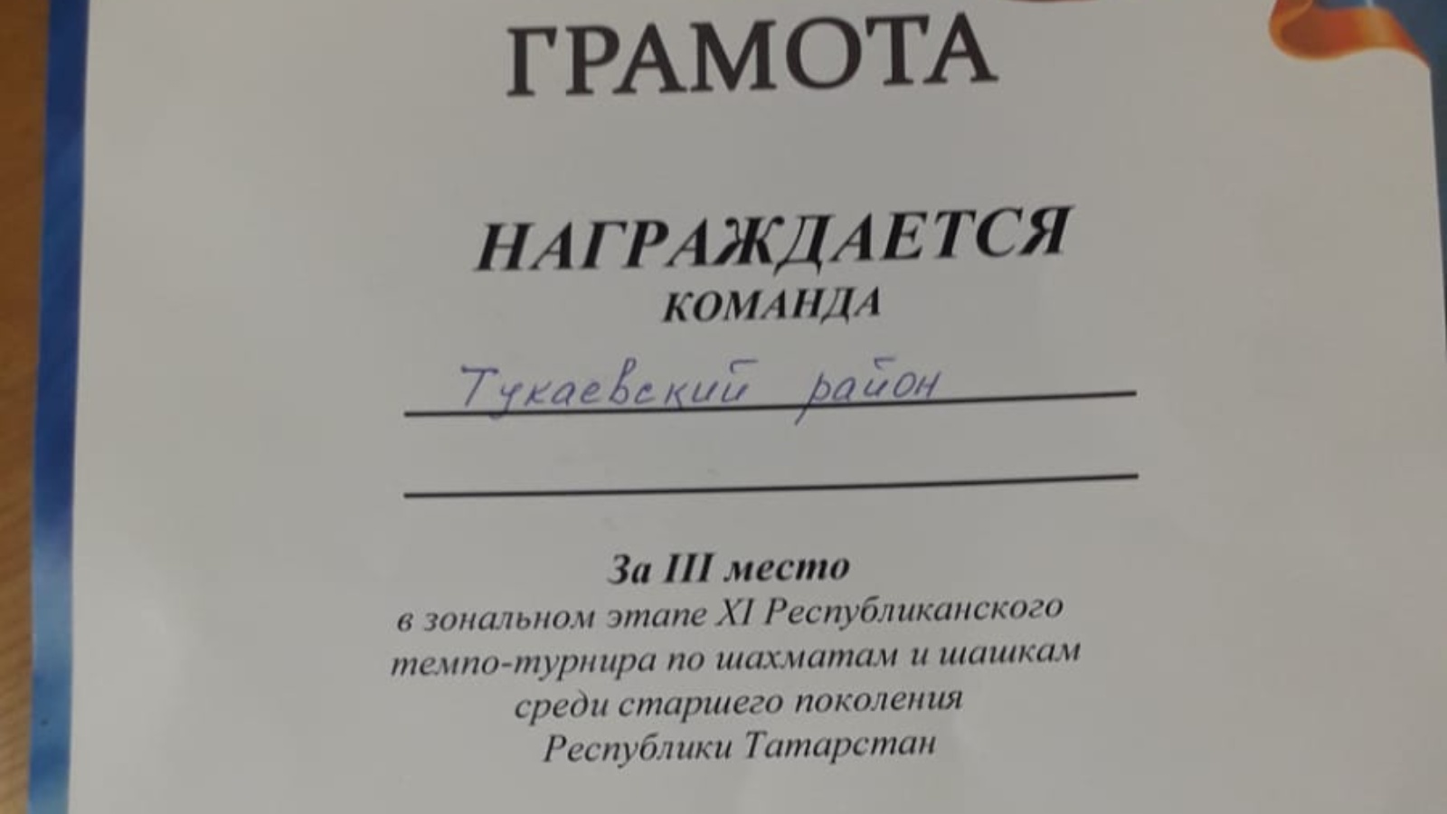 Татарстан Республикасының өлкән буыннары арасында шахмат һәм адымнар буенча XI республика темпо-турнирының зона этабында Тукай районы командасы 3 урынны яулады .Төркемендә