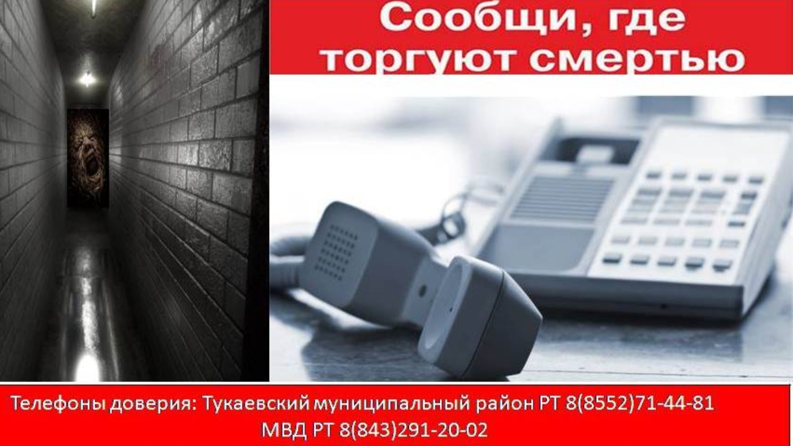 Җәмәгатьчелек игътибарын наркотикларның законсыз әйләнешенә каршы торуга җәлеп итү һәм аларны медицина куллануын профилактикалау, оператив-әһәмиятле мәгълүмат җыю һәм тикшерү, наркотикларга бәйле затларны дәвалау һәм реабилитацияләү мәсьәләләре буенча квалификацияле ярдәм күрсәтү һәм консультацияләр күрсәтү, наркотиклар керү каналларын ябу, наркотиклар әзерләү, таратуны һәм куллануны пропагандалаучы интернет-сайтларны һәм затларны ачыклау, шулай ук балигъ булмаганнарны җинаятьчелеккә тарту фактларына юл куймау максатыннан, 2022 елның 14-25 мартында Татарстан Республикасында "Үлем белән кайда сату итәләр, хәбәр ит!" дигән акция уза.