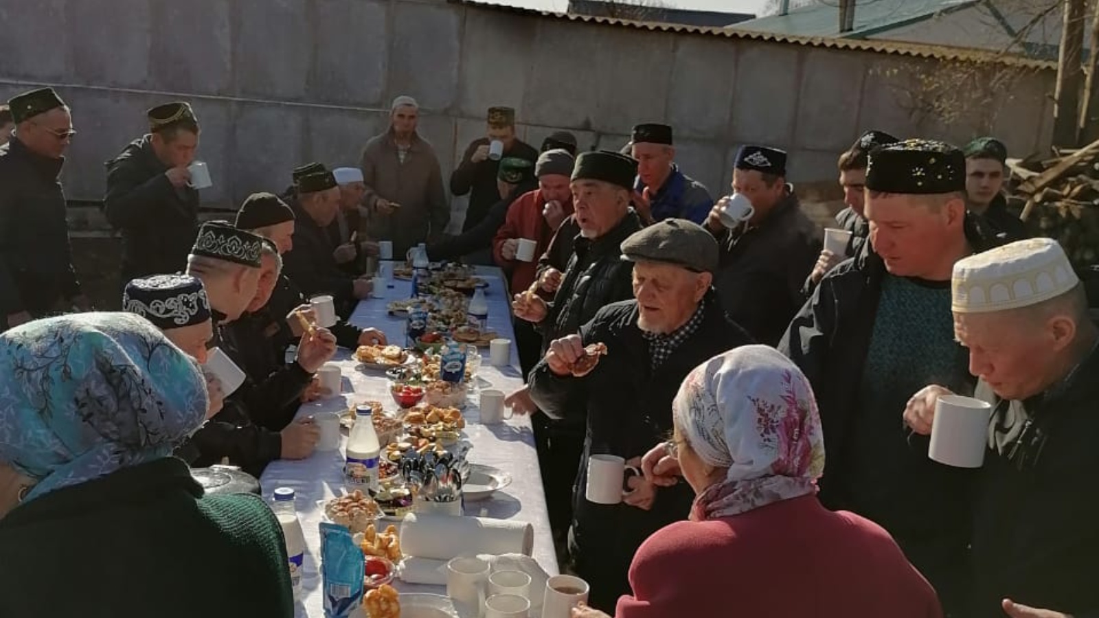Гаеттэн чыккач мич коймагы белэн чәй эчтеләр.