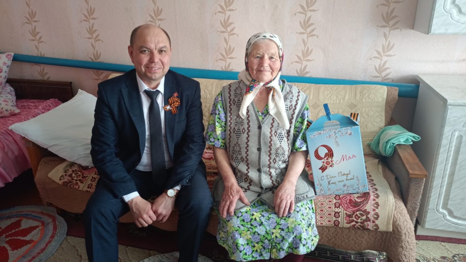 Башкарма комитет җитәкчесе Айрат Рафак улы Хәбибуллин уз исменнән, район башлыгы Фаил Камаев исеменнән ветераннрны бәйрәм белән котладылар, күчтәнәчләр тапшырды.